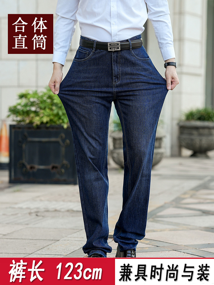 젊은 키가 큰 줄 지어 123cm 청바지 스트레이트 하이 웨이스트 두꺼운 탄성 캐주얼 세척 스톤 밀 남성 2283