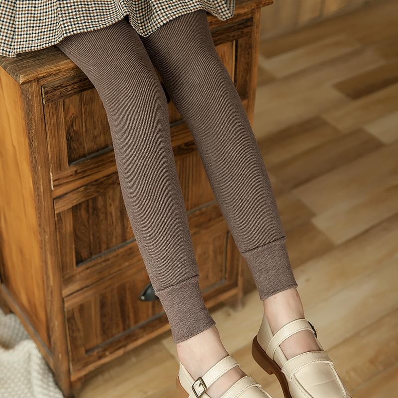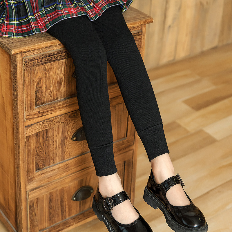 겨울 여아 기모 레깅스 두꺼운 양이온 V-웨이스트 세로 줄무늬 캐시미어 바지 슬림핏 대형 스트레치 팬티 스타킹