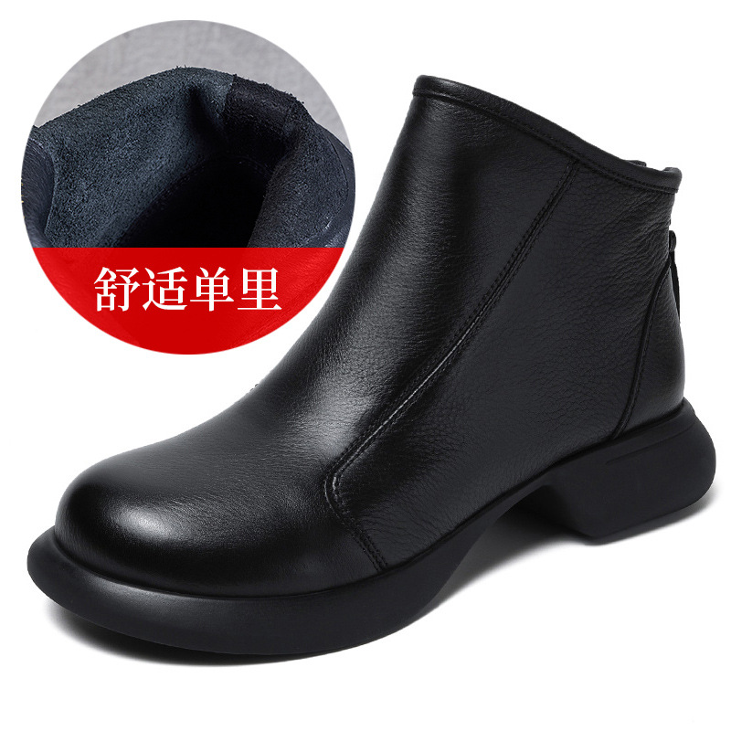 정품 가죽 빈티지 숏부츠 여성용 2022 가을 겨울 지퍼 싱글 부츠 편안한 엄지 발가락 신발 소프트 솔 순수 수제 올매치 네이키드 부츠스토어 가기