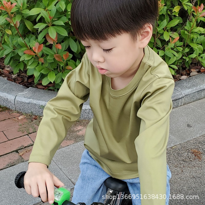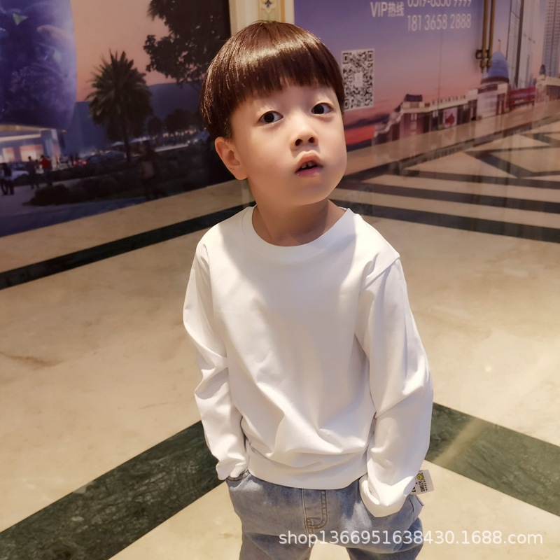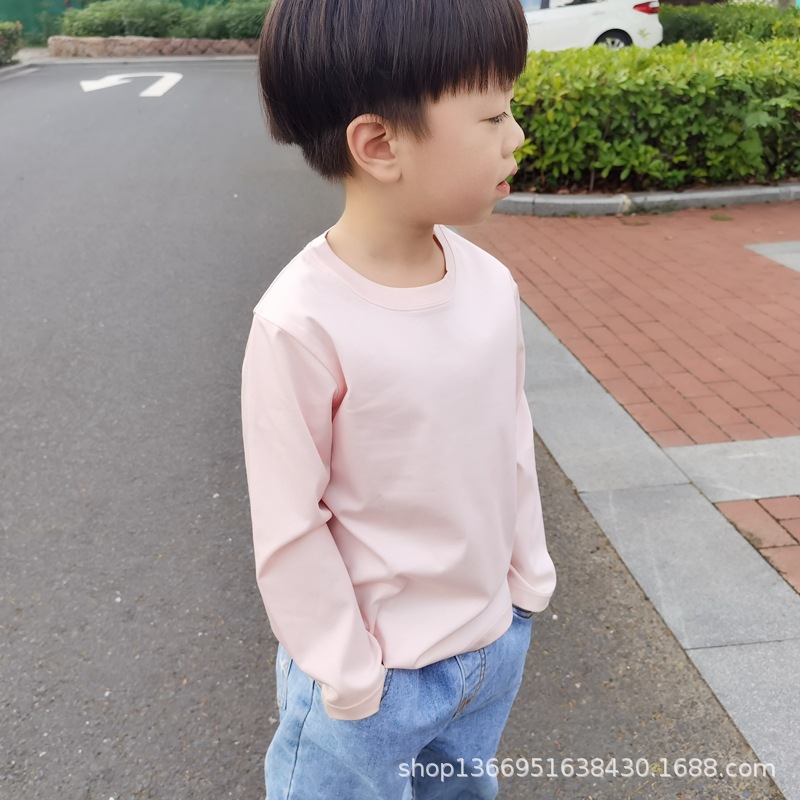 헤비웨이트 80수 양면 광택 면 아동용 긴팔 티셔츠 가을 순면 부모-자녀 남녀 아기 라운드넥 티셔츠