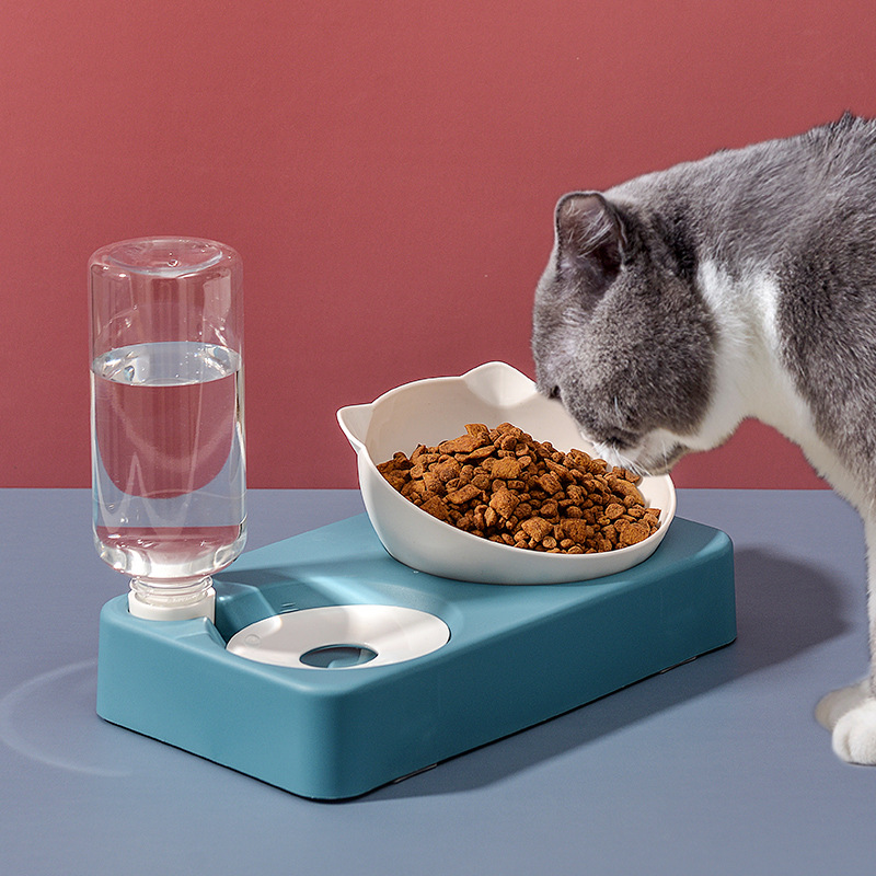 宠物自动续水双碗 食品级猫咪防打翻粮食碗狗碗自动饮水斜口猫碗