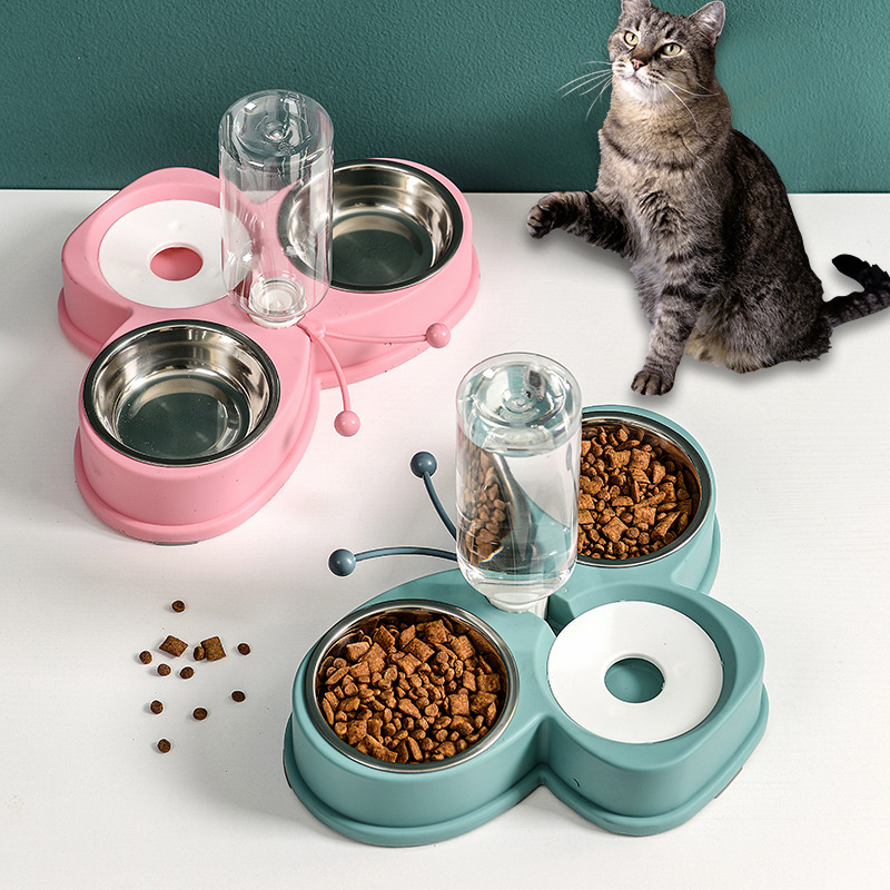 새로운 애완동물 자동 피더 대용량 PP 개 수유 더블 볼 고양이 자동 음주 애완동물 용품