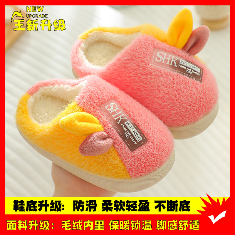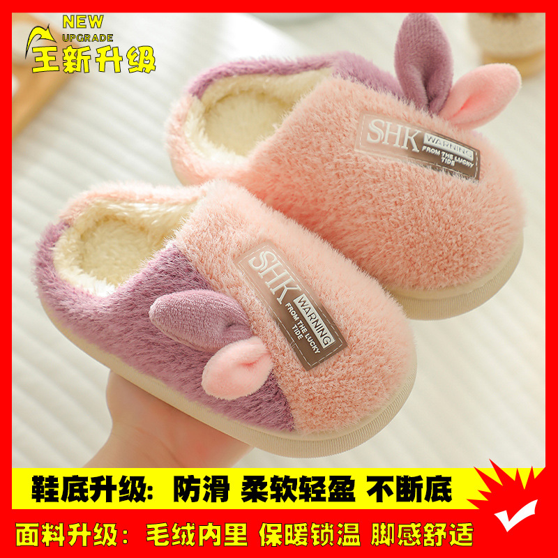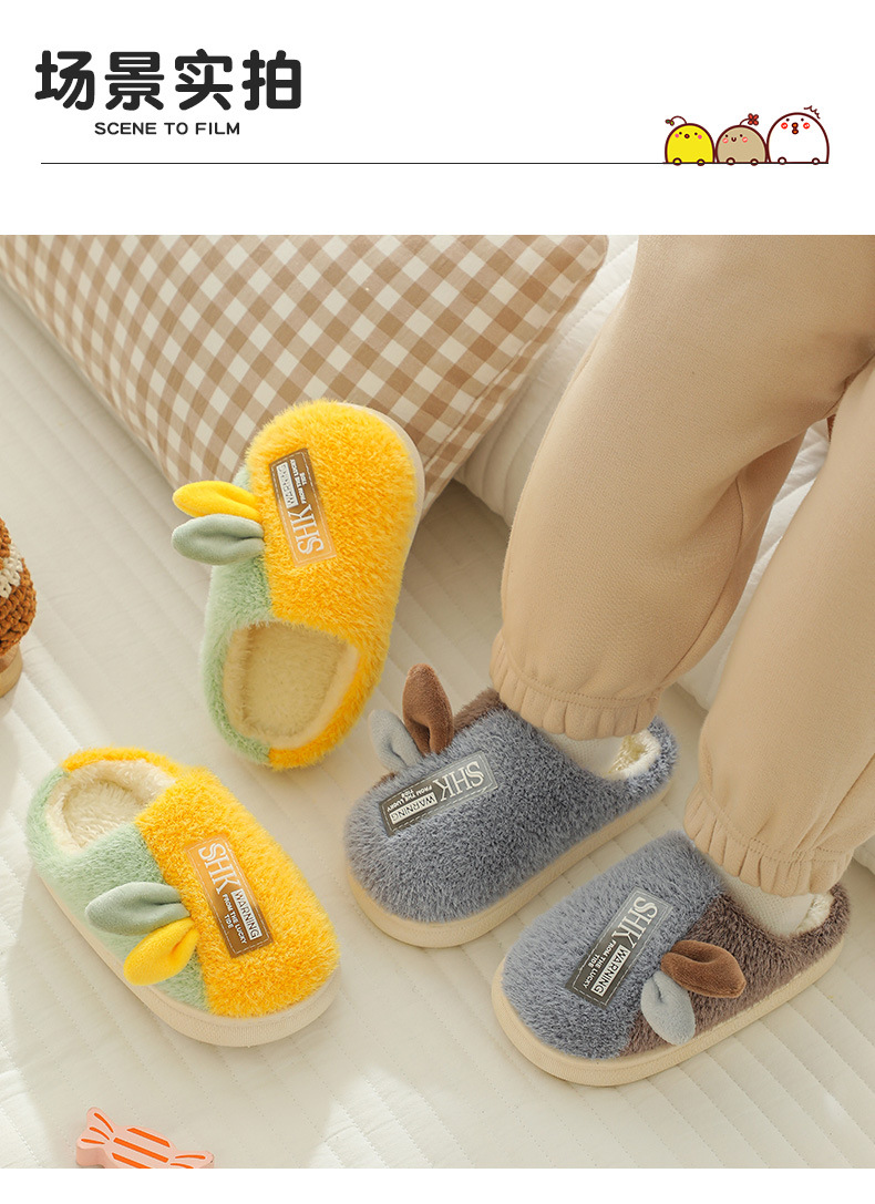 어린이 면 슬리퍼 부모-자식 신발 기모 두꺼운 부드러운 단독 홈 패션 만화 울 슬리퍼 소년과 소녀를위한 면 슬리퍼