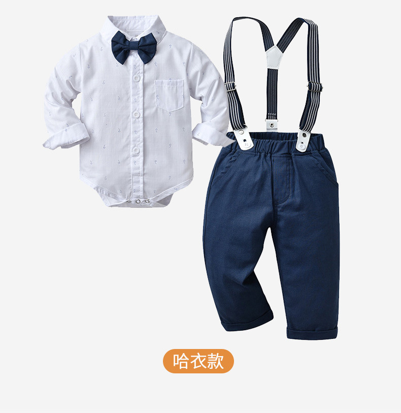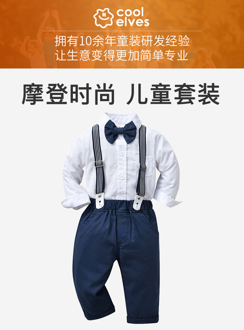 아동 의류 도매 영국 벨트 바지 두 세트의 아동 의류 아기 봄과 가을 긴 소매 소년 세트스토어 가기