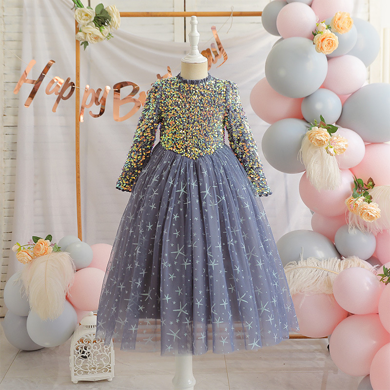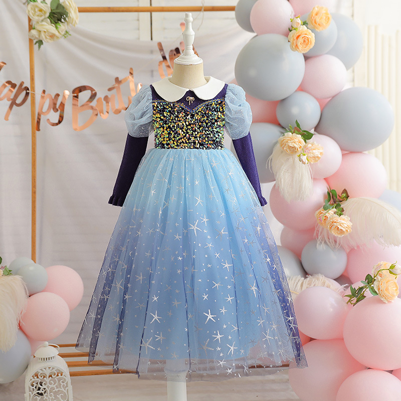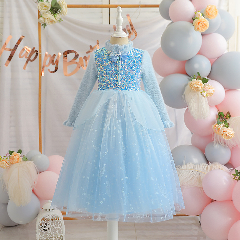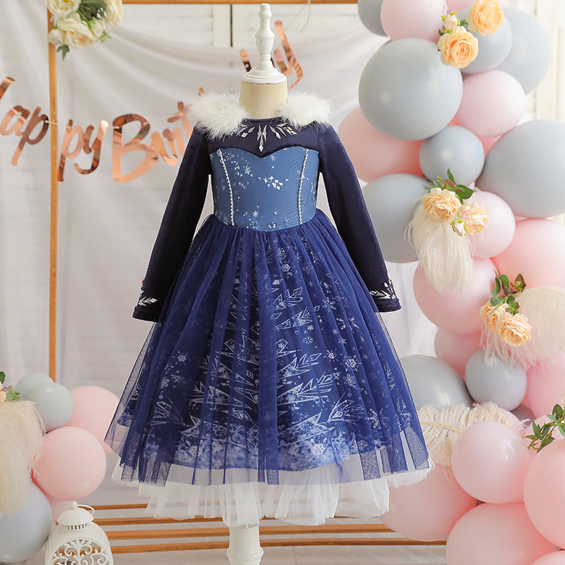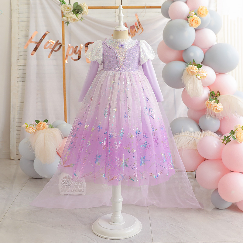 여자 드레스 2025 새로운 스타일 안나 엘사 긴팔 공주 드레스 중소 어린이를위한 하얀 눈 드레스