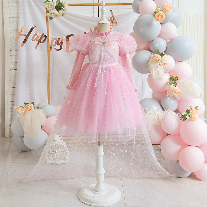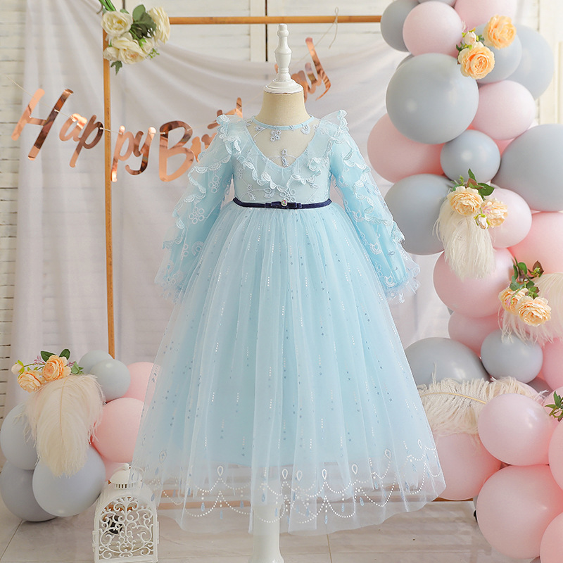 2022春夏新款爱莎公主裙女童甜美礼服裙仙女风蓬蓬纱裙女宝宝夏装