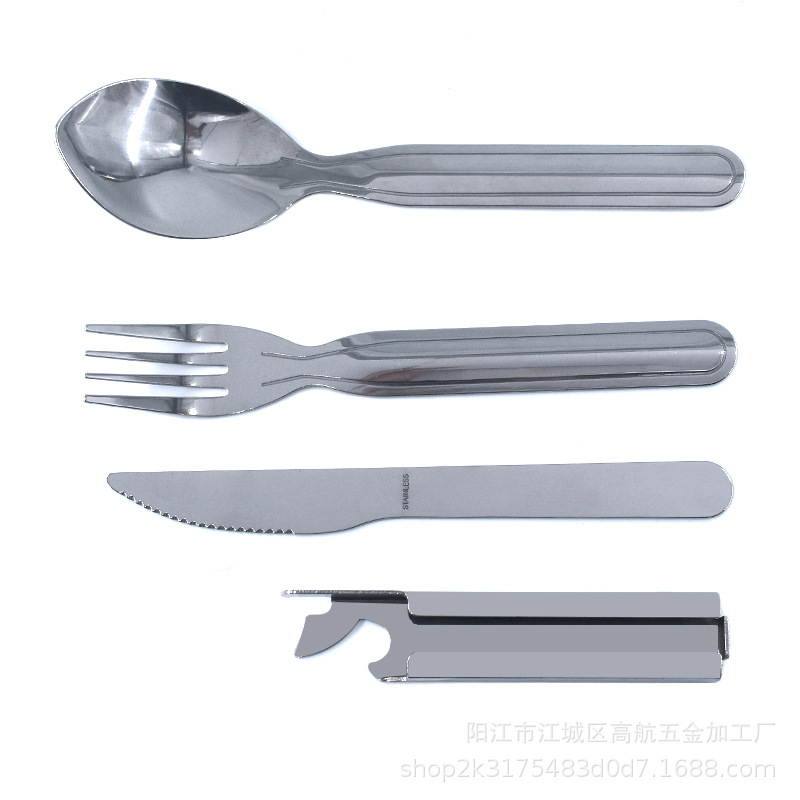 스테인레스 스틸 나이프, 포크 및 스푼 세트 조합 야외 피크닉 휴대용 식기 4 피스 다목적 나이프스토어 가기