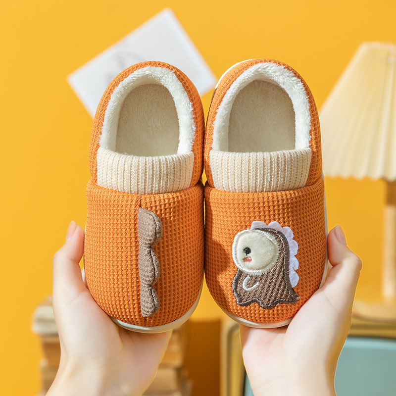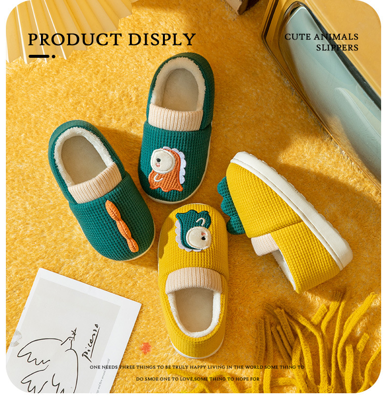 가을과 겨울 귀여운 만화 공룡 소녀 면 슬리퍼 도매 실내 미끄럼 방지 어린이 플러시 따뜻한 슬리퍼