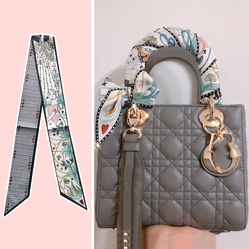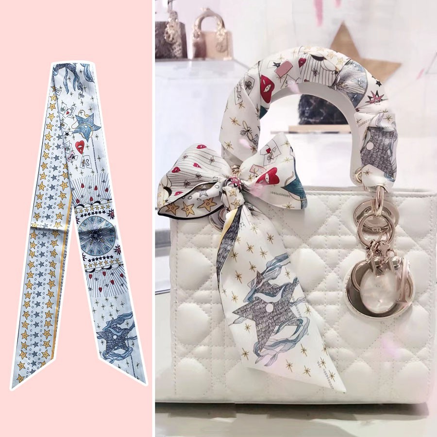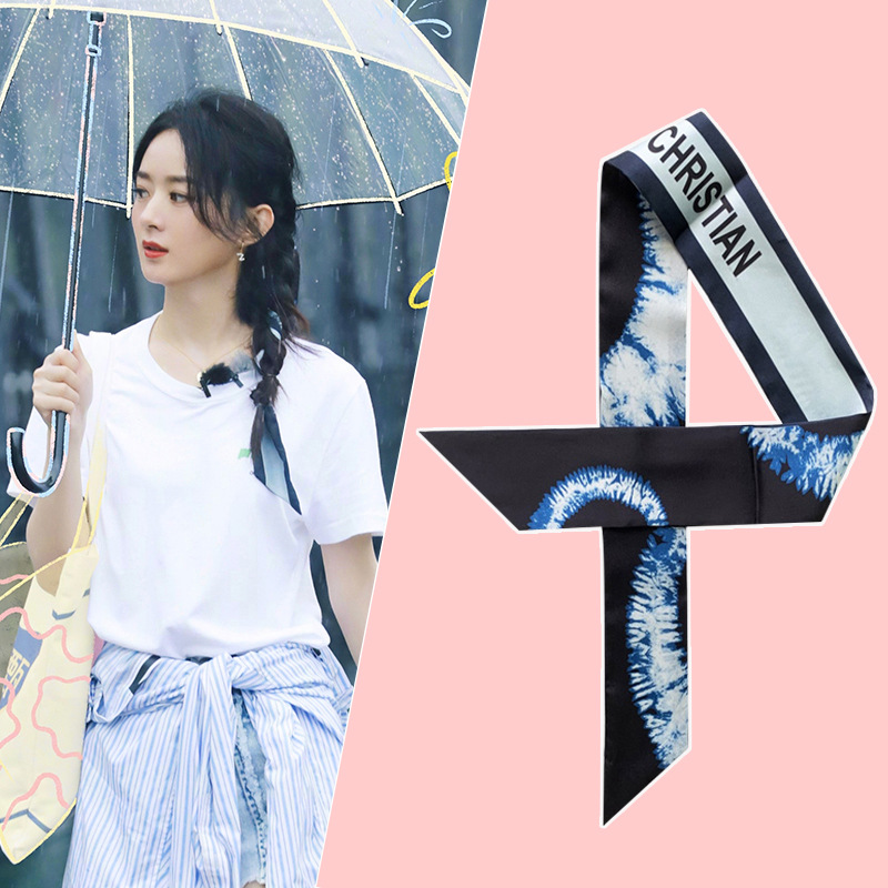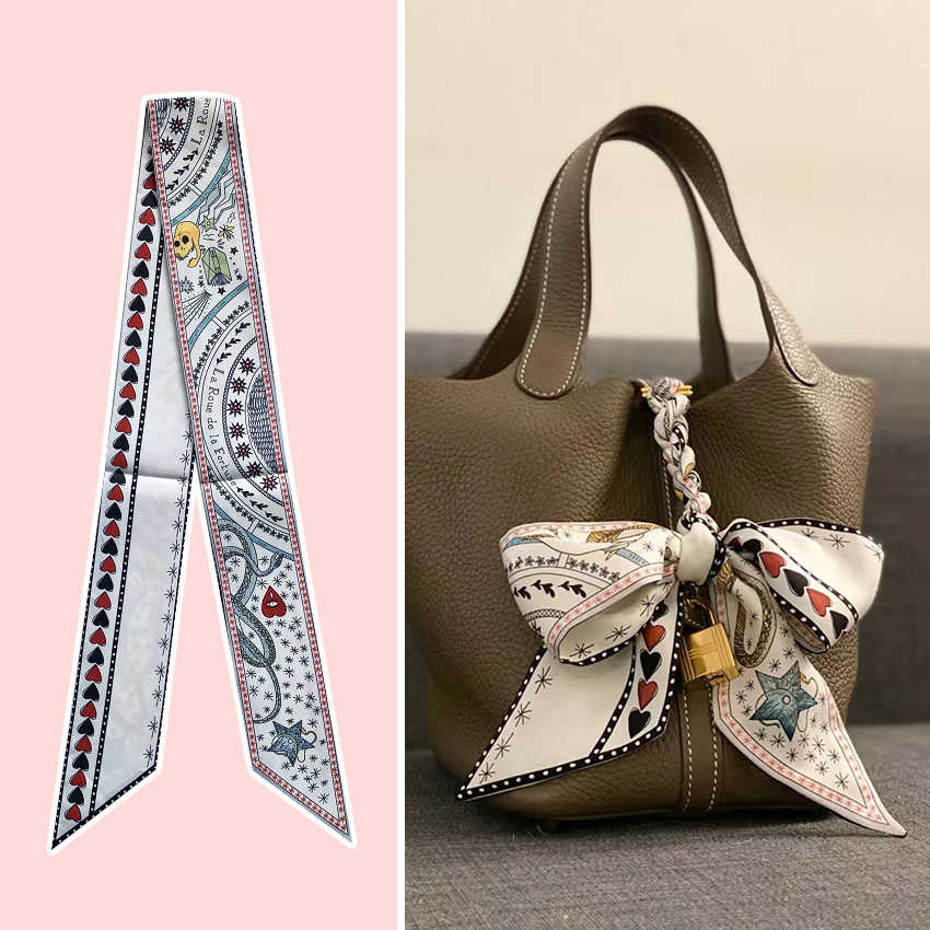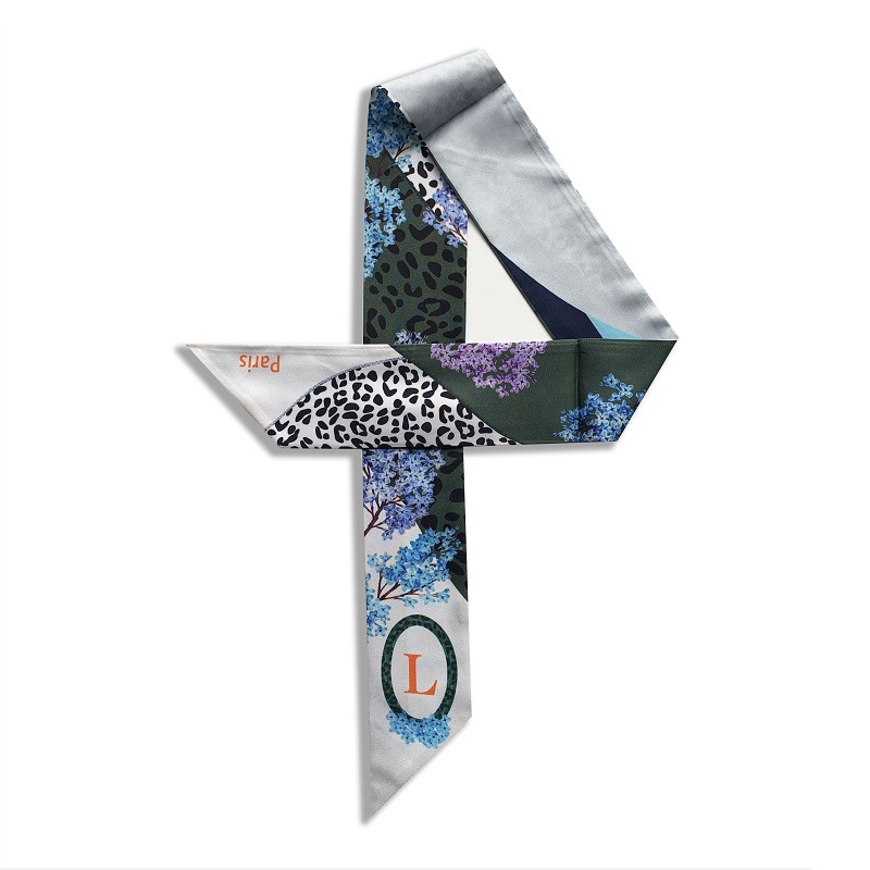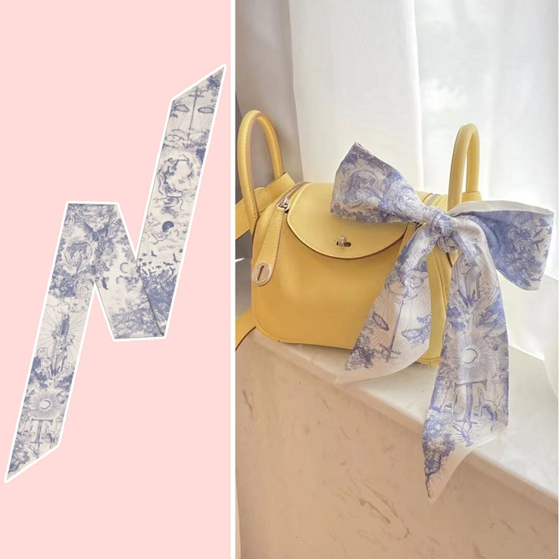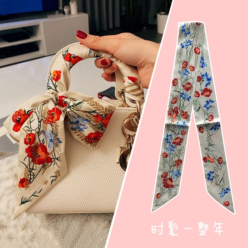 여름 새로운 회색 동물 헤어 밴드 여성용 헤어 타이 작은 실크 스카프 긴 스트립 포장 가방 리본 가방 넥타이 가방 핸들 스트랩