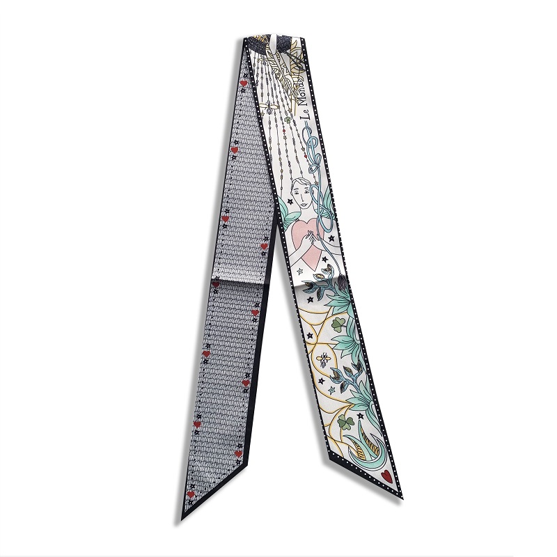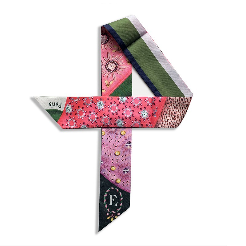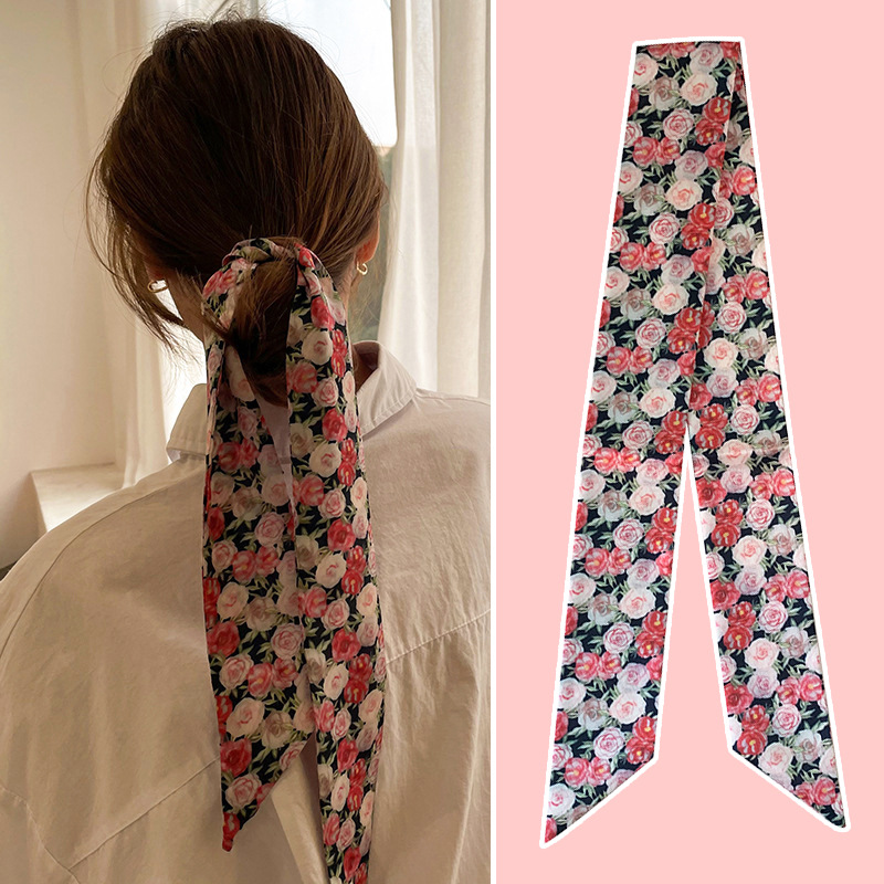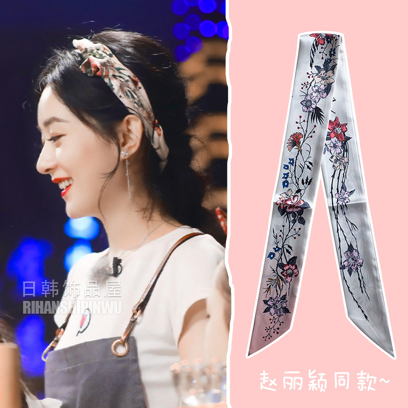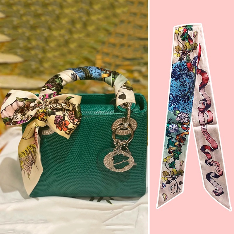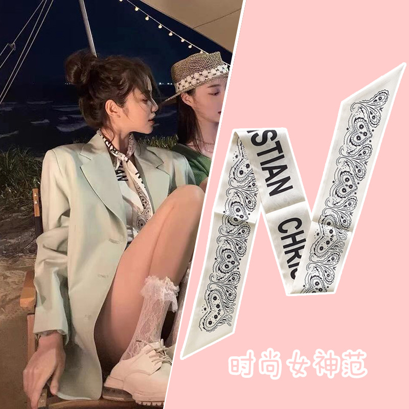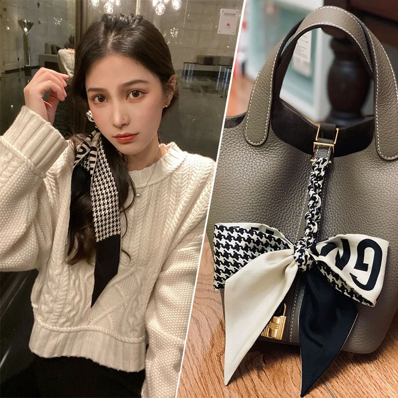 여름 새로운 회색 동물 헤어 밴드 여성용 헤어 타이 작은 실크 스카프 긴 스트립 포장 가방 리본 가방 넥타이 가방 핸들 스트랩