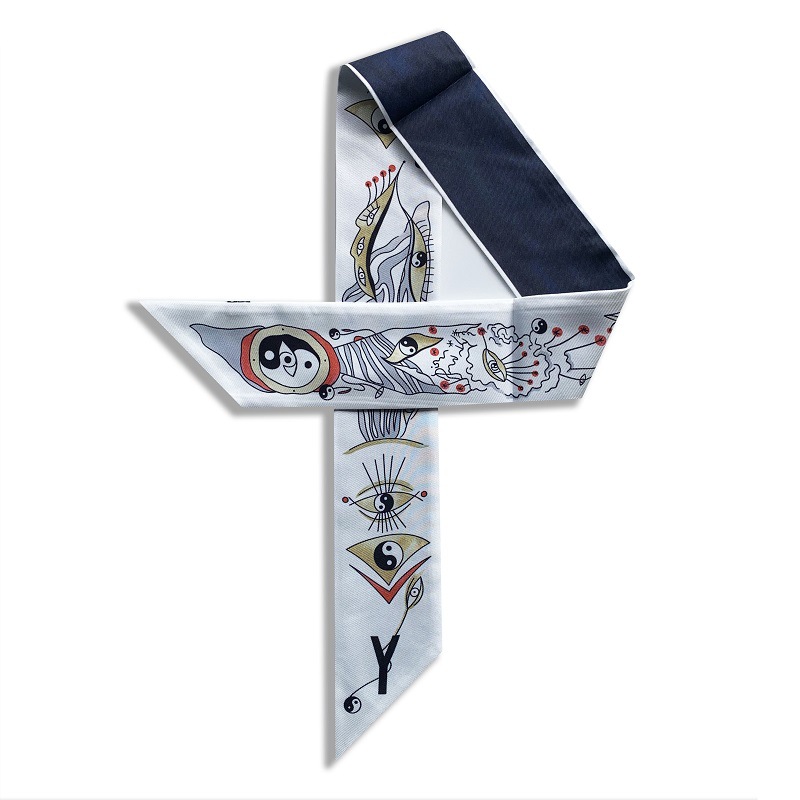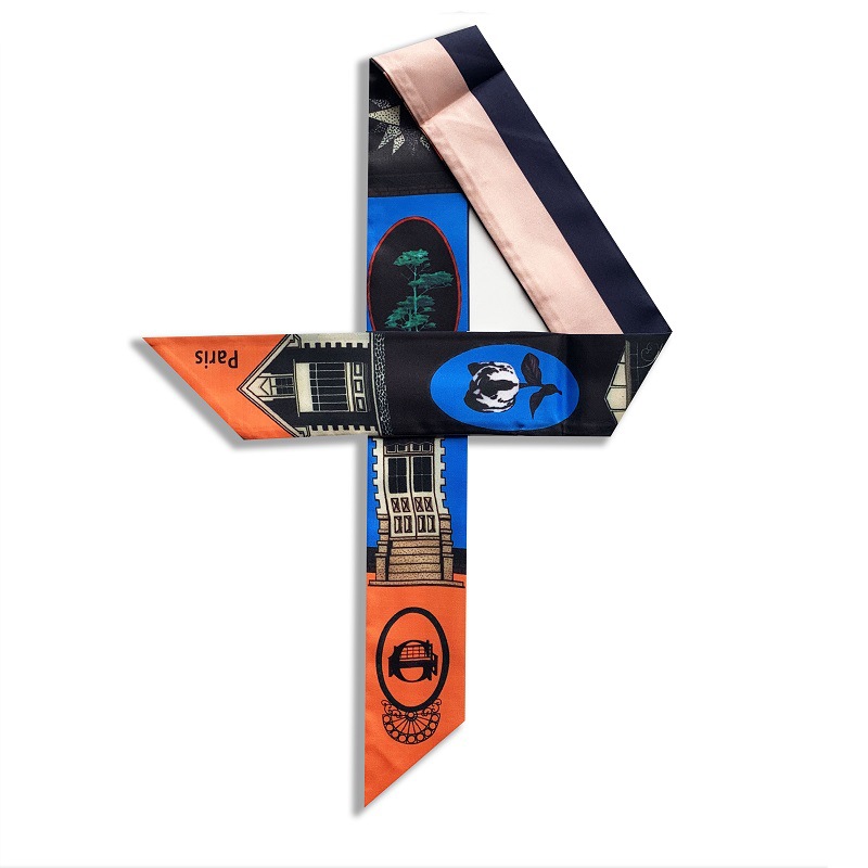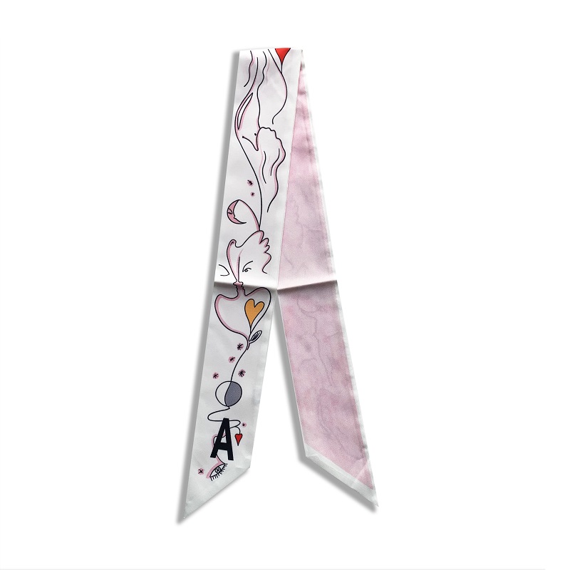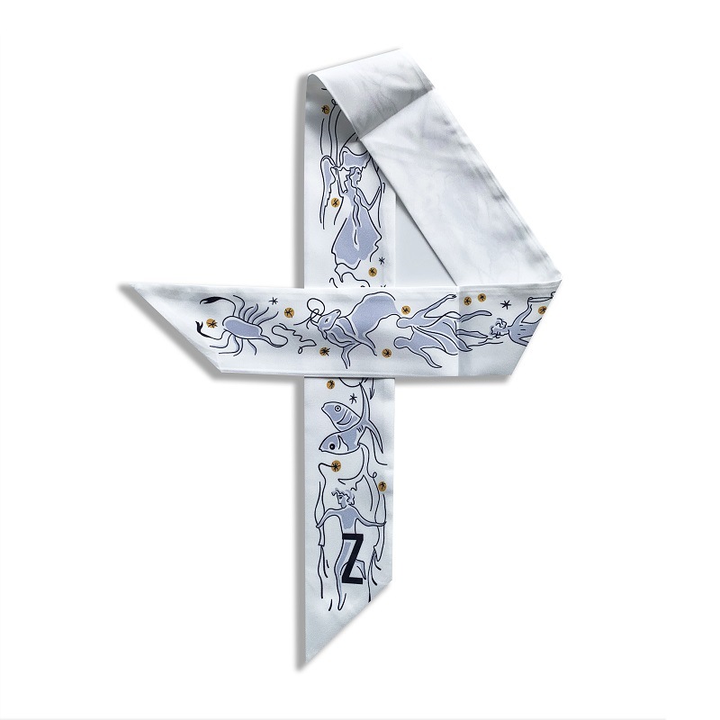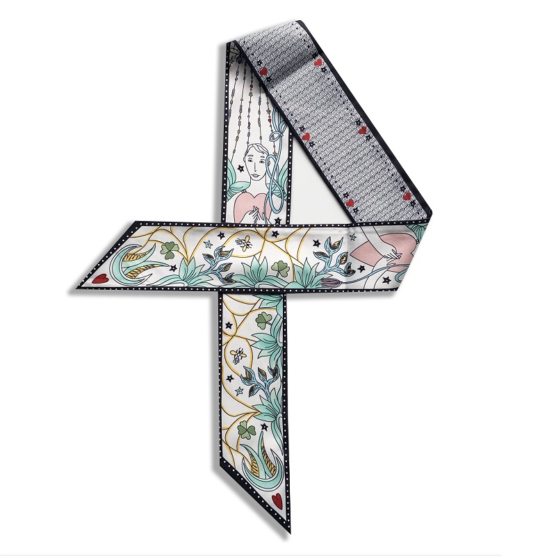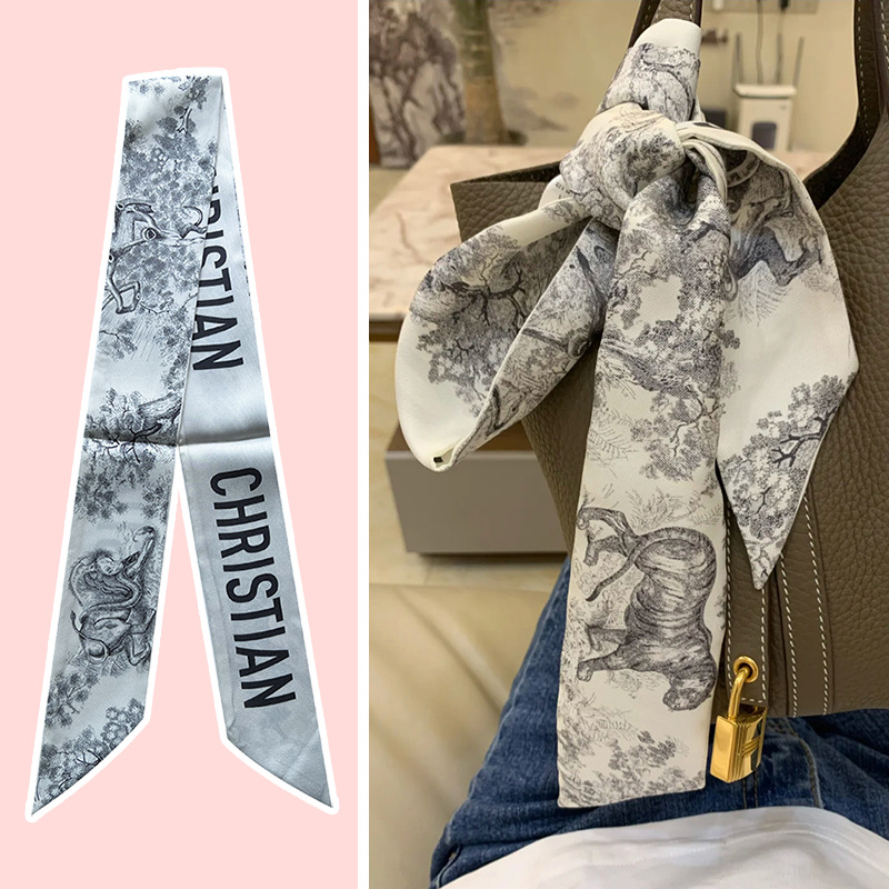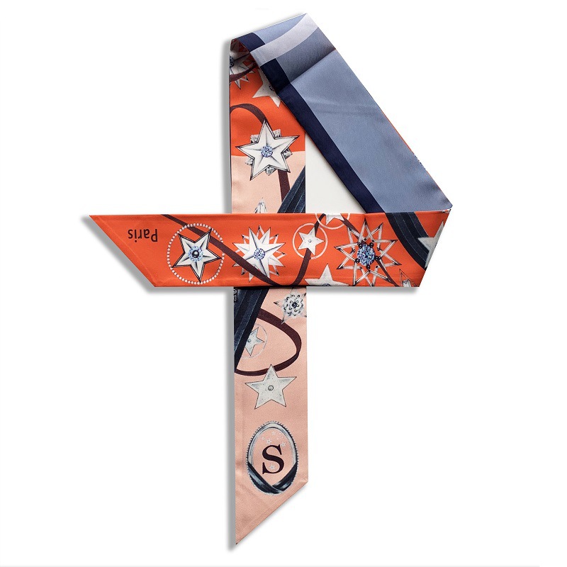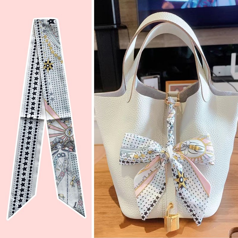 여름 새로운 회색 동물 헤어 밴드 여성용 헤어 타이 작은 실크 스카프 긴 스트립 포장 가방 리본 가방 넥타이 가방 핸들 스트랩