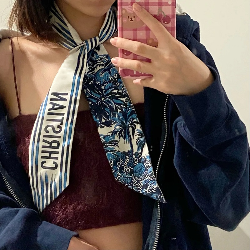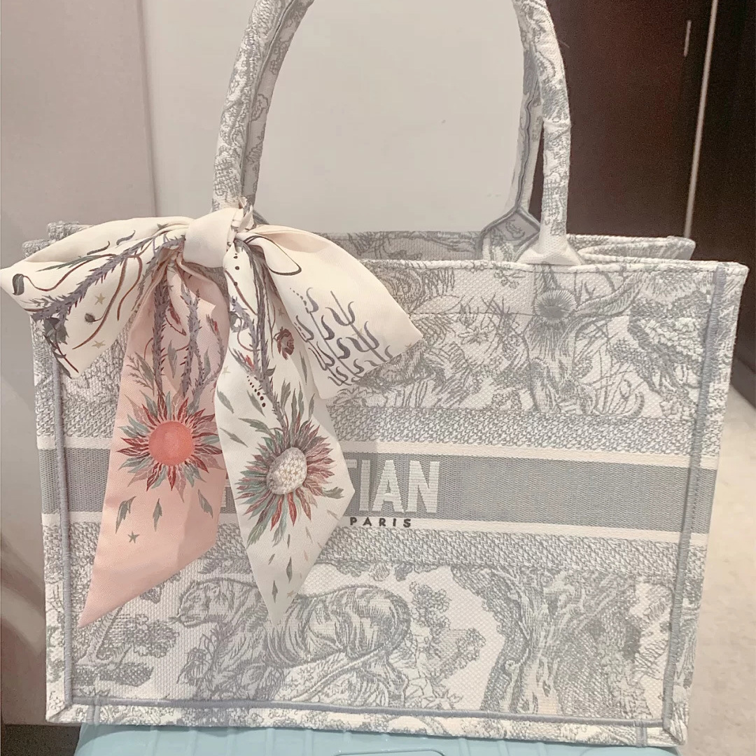 여름 새로운 회색 동물 헤어 밴드 여성용 헤어 타이 작은 실크 스카프 긴 스트립 포장 가방 리본 가방 넥타이 가방 핸들 스트랩스토어 가기