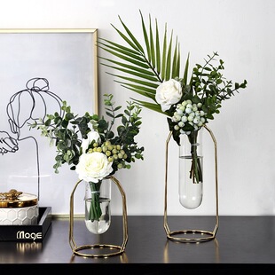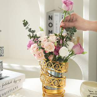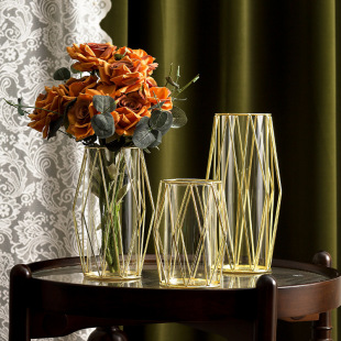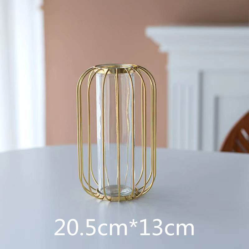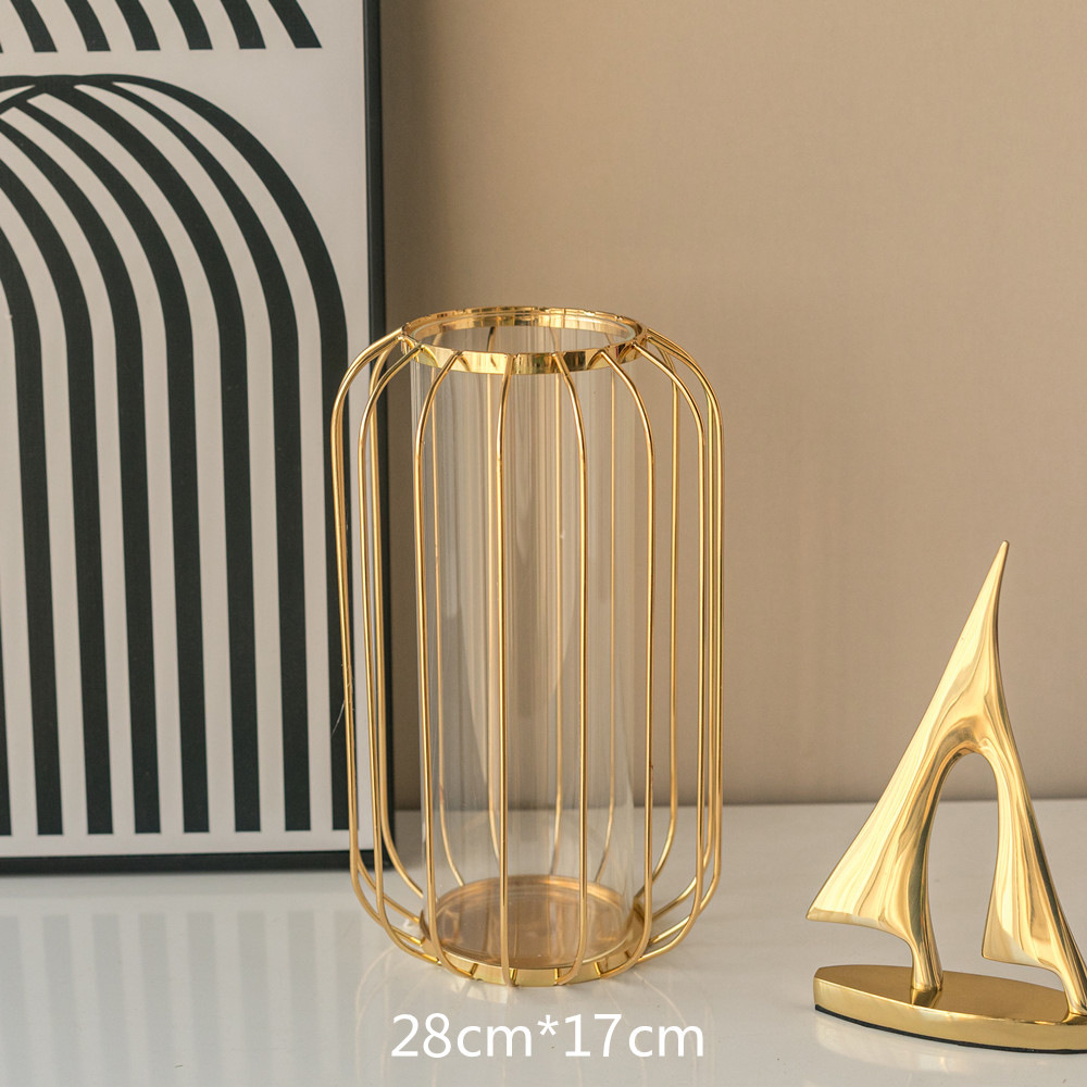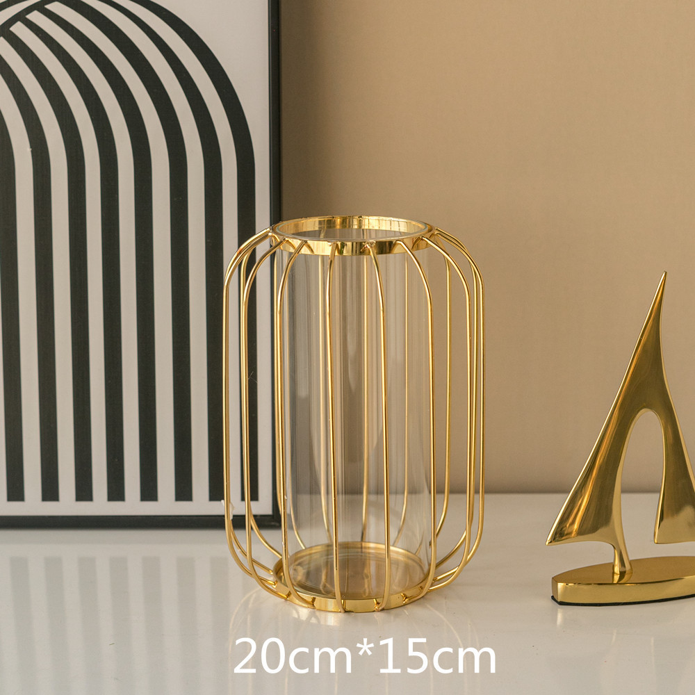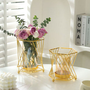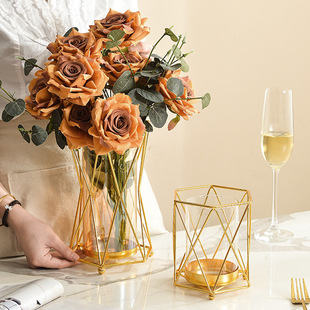 가벼운 고급 철 유리 꽃꽂이 식탁 데스크탑 장식품 홈 랜턴 꽃병 거실 모델 룸 전기 도금 수경법스토어 가기