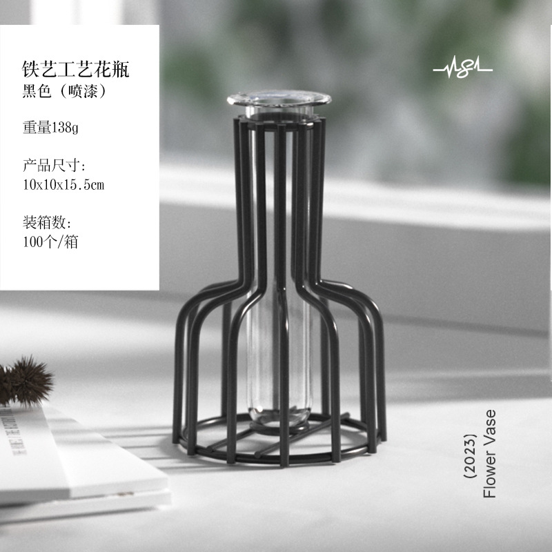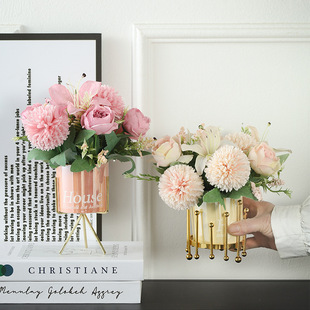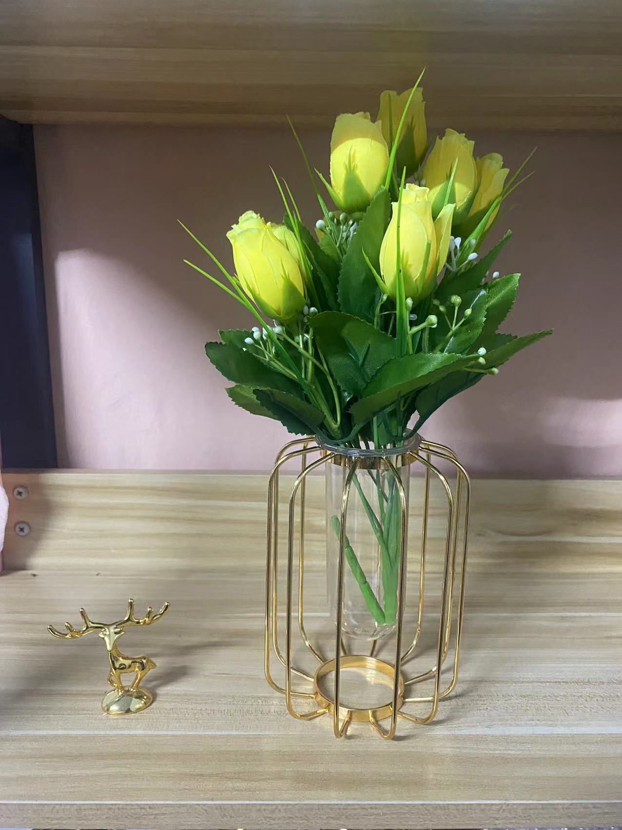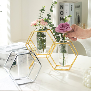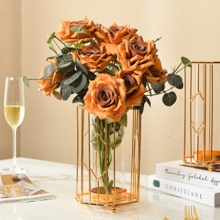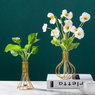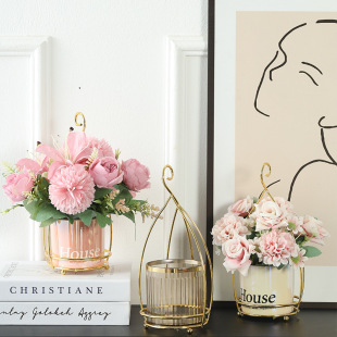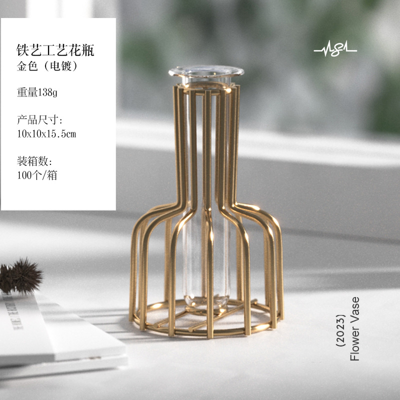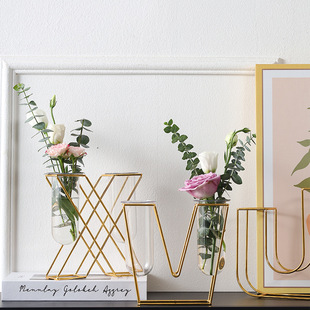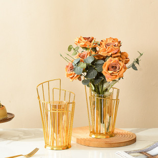 가벼운 고급 철 유리 꽃꽂이 식탁 데스크탑 장식품 홈 랜턴 꽃병 거실 모델 룸 전기 도금 수경법스토어 가기