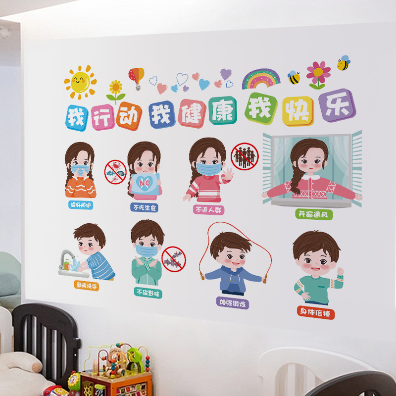 벽 스티커 내 행동 내 건강한 아이들 만화 테마 자기 접착 스티커 집 거실 장식 스티커 69017