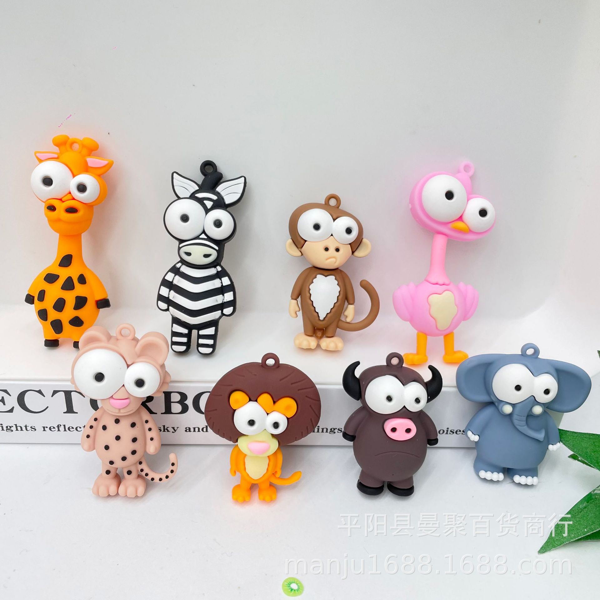 창조적 인 만화 귀여운 큰 눈 동물 열쇠 고리 펜던트 눈을 터뜨리는 기린 얼룩말 동물 열쇠 고리 신발 액세서리