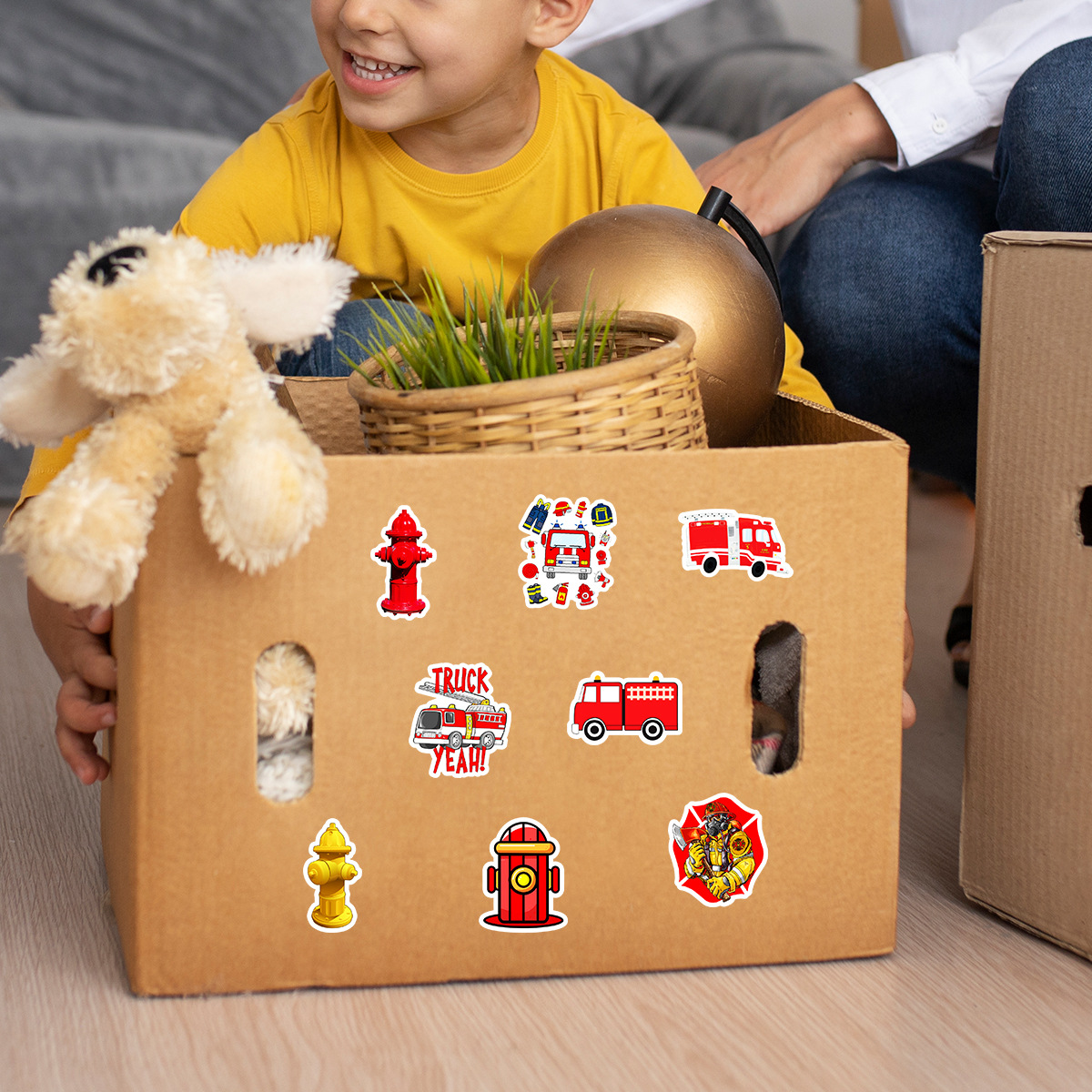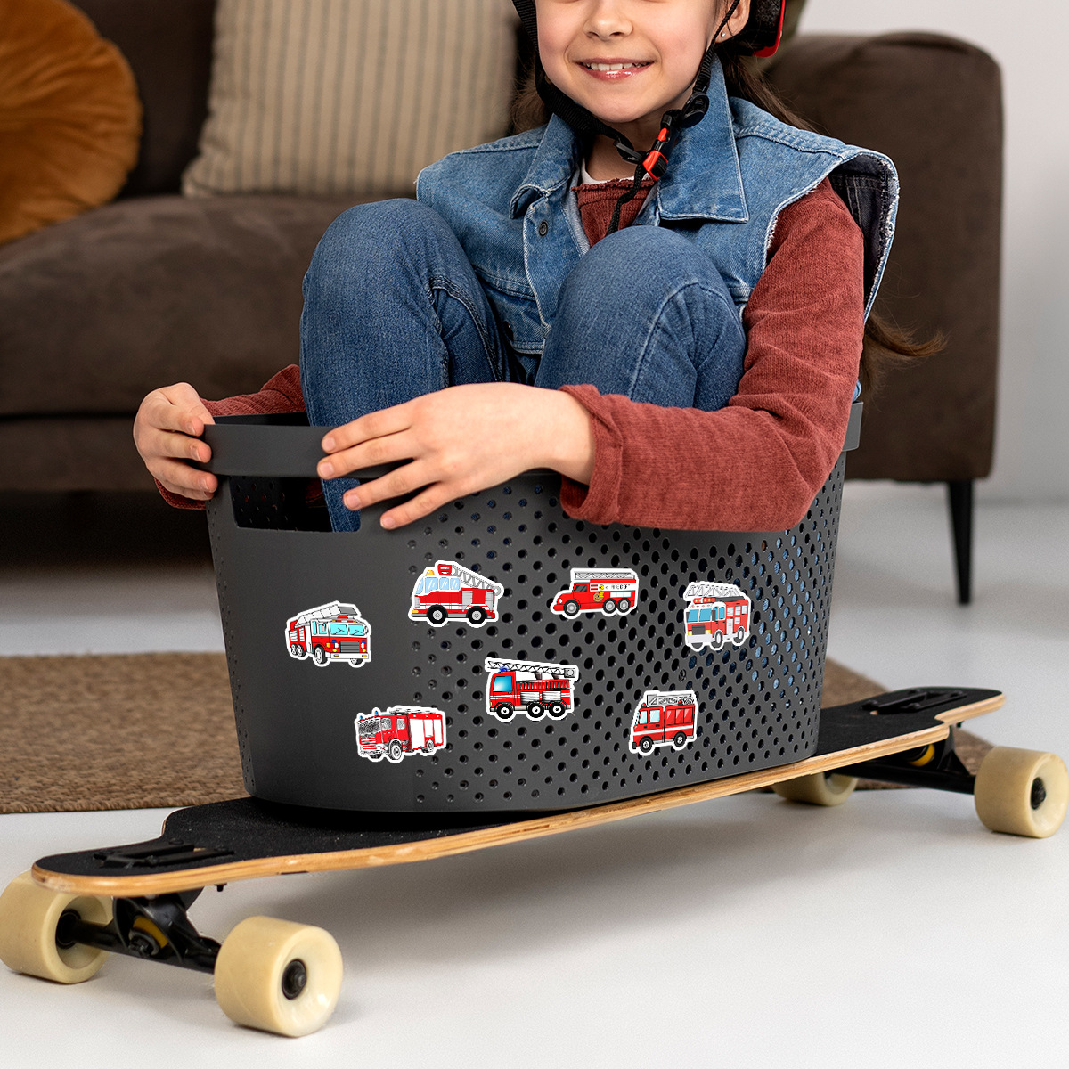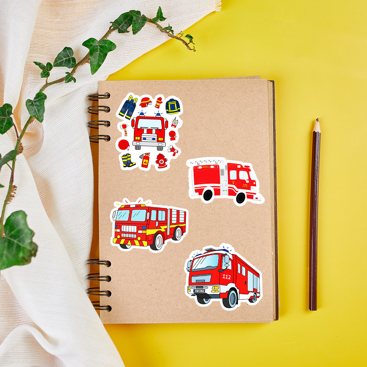 50 소방차 낙서 스티커 자동차 휴대 전화 손 컵 장식 스티커 노트북 손 계정 스티커 방수 도매스토어 가기