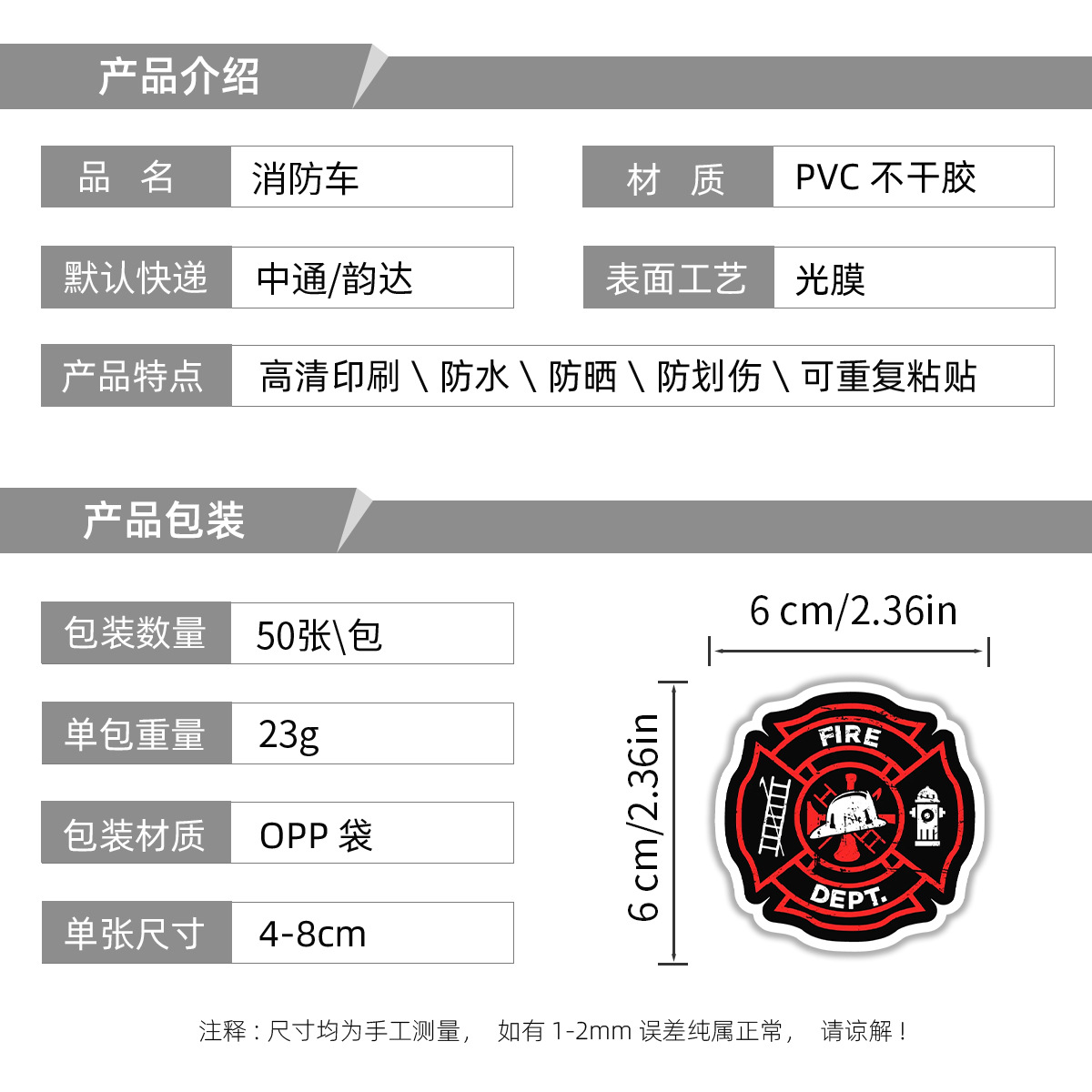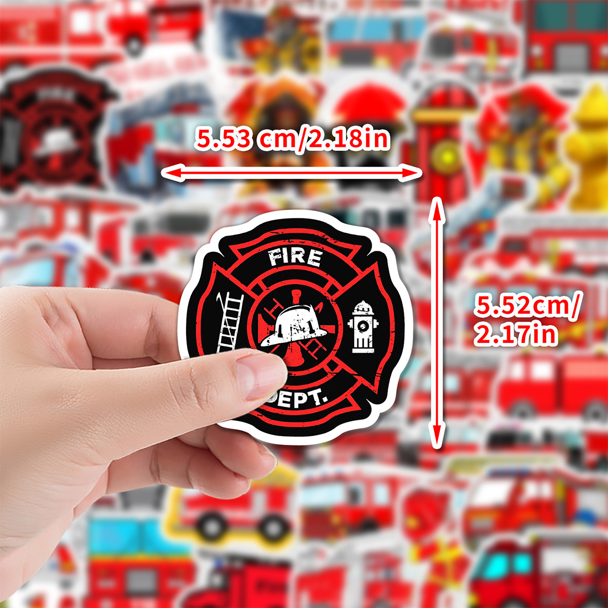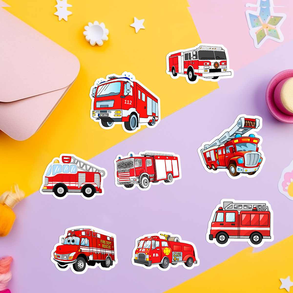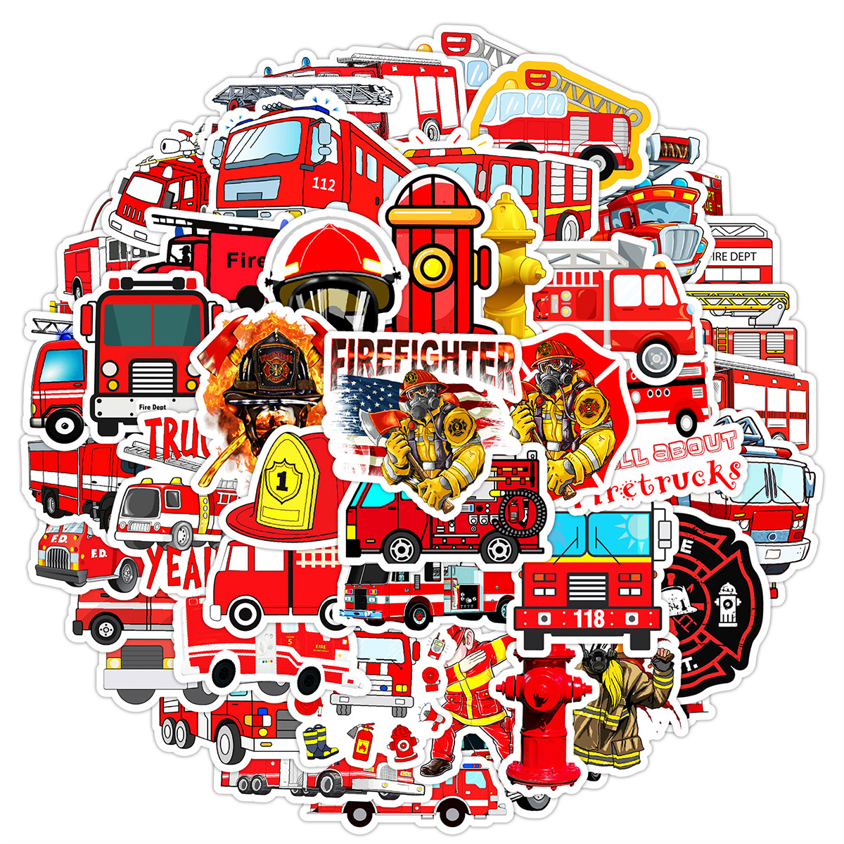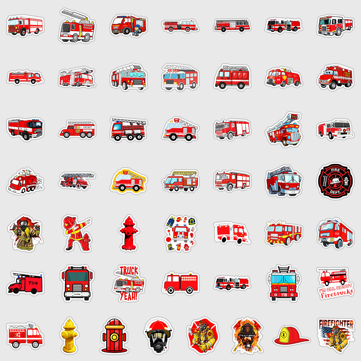 50 소방차 낙서 스티커 자동차 휴대 전화 손 컵 장식 스티커 노트북 손 계정 스티커 방수 도매