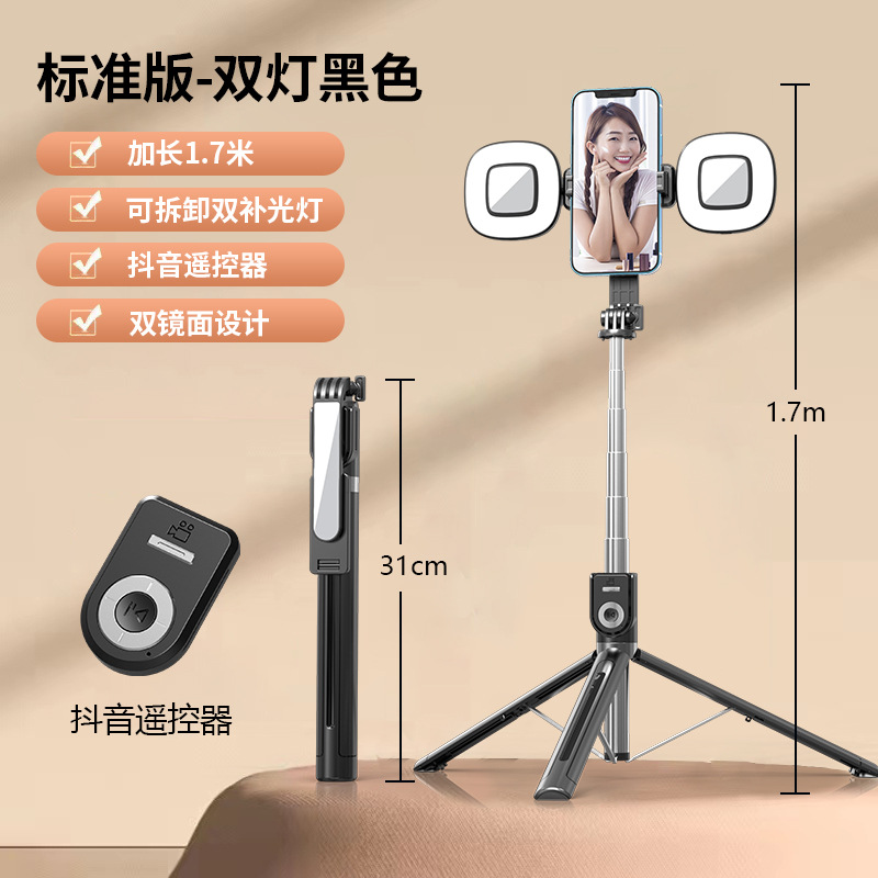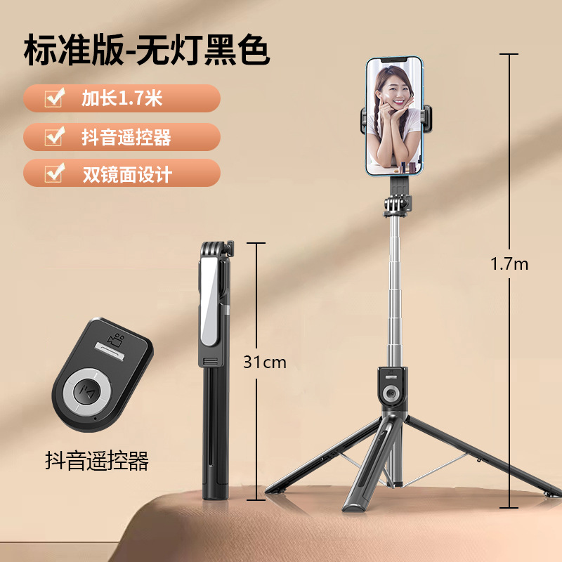 1.7m 다기능 원격 제어 셀카봉, Douyin Kuaishou 비디오 및 야외 사진 촬영을 위한 바닥 삼각대