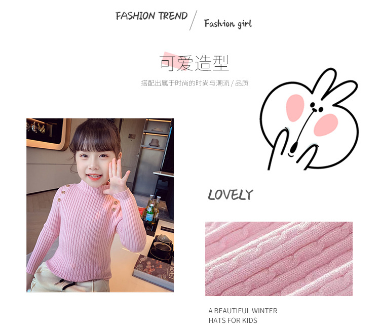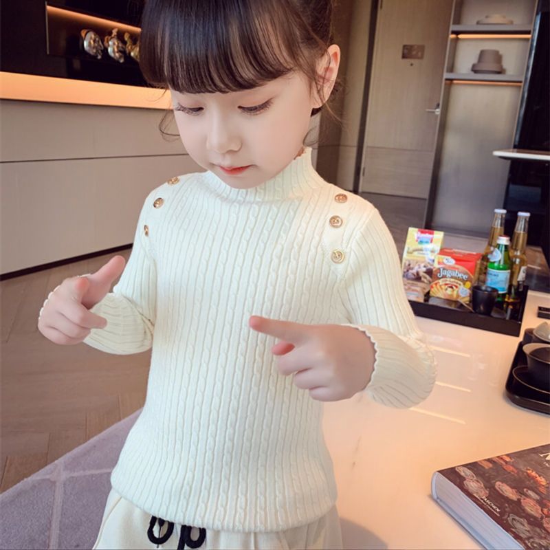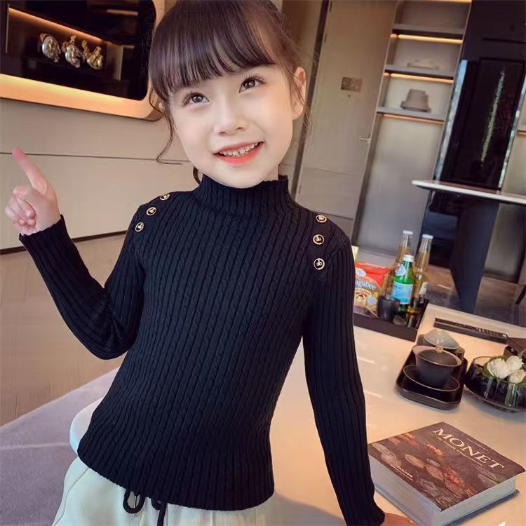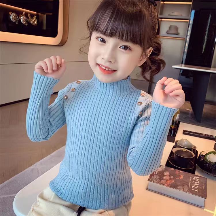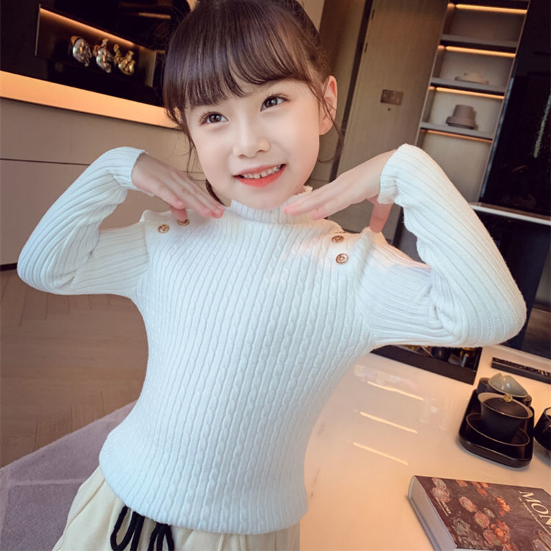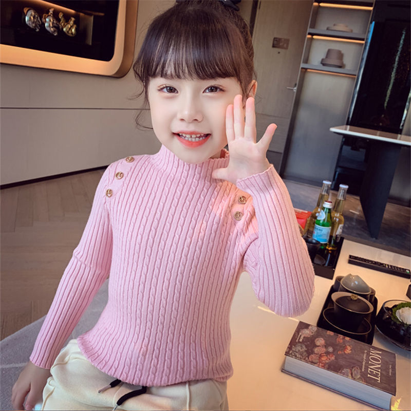 여아용 스웨터 가을옷 2025 신상 한국 스타일 아동용 패셔너블 풀오버 트위스트 하이넥 니트 셔츠