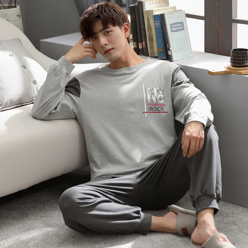 잠옷 남자의 가을 면 긴팔 바지 투피스 캐주얼 아웃웨어 스포츠 남자의 면 가정복 세트스토어 가기
