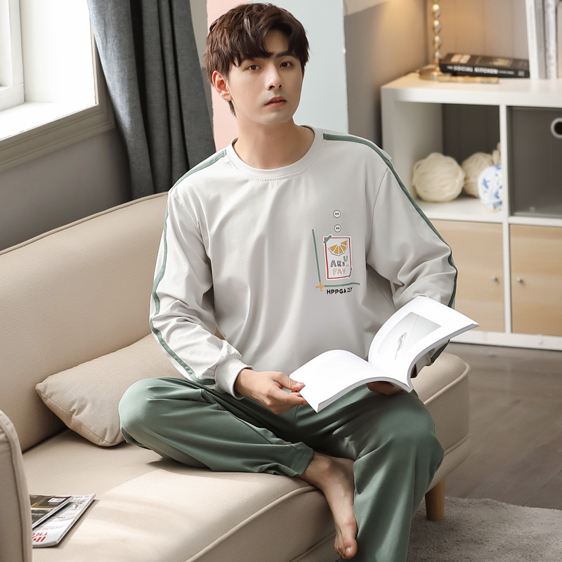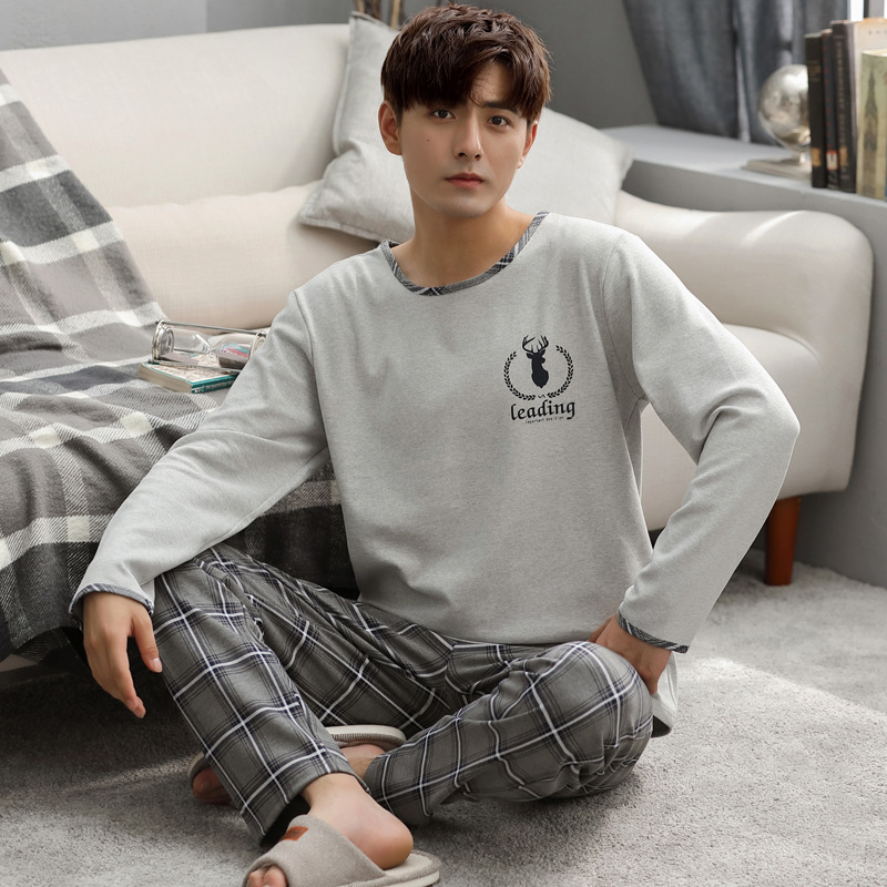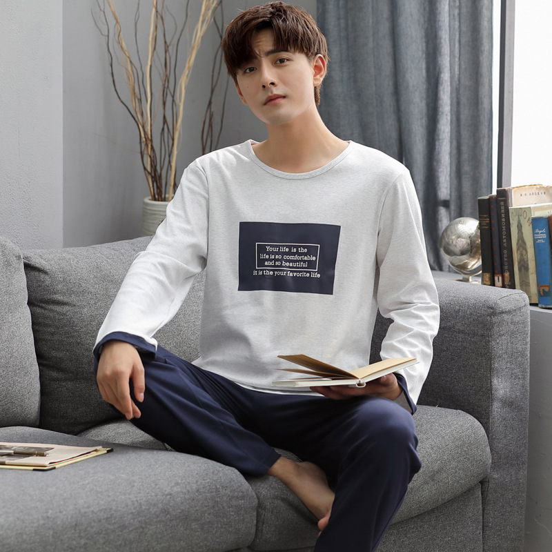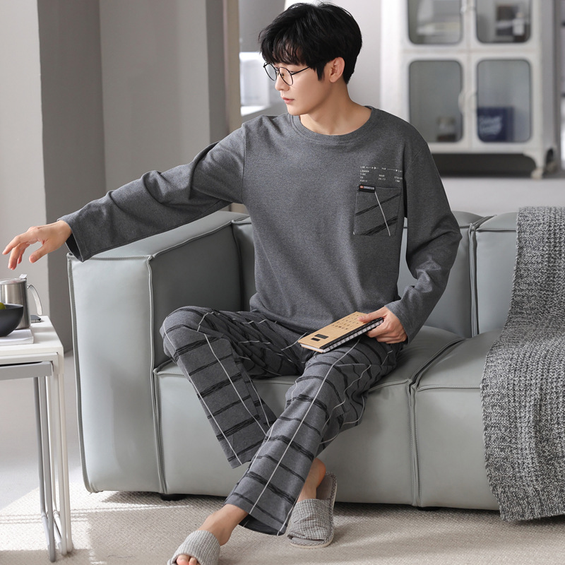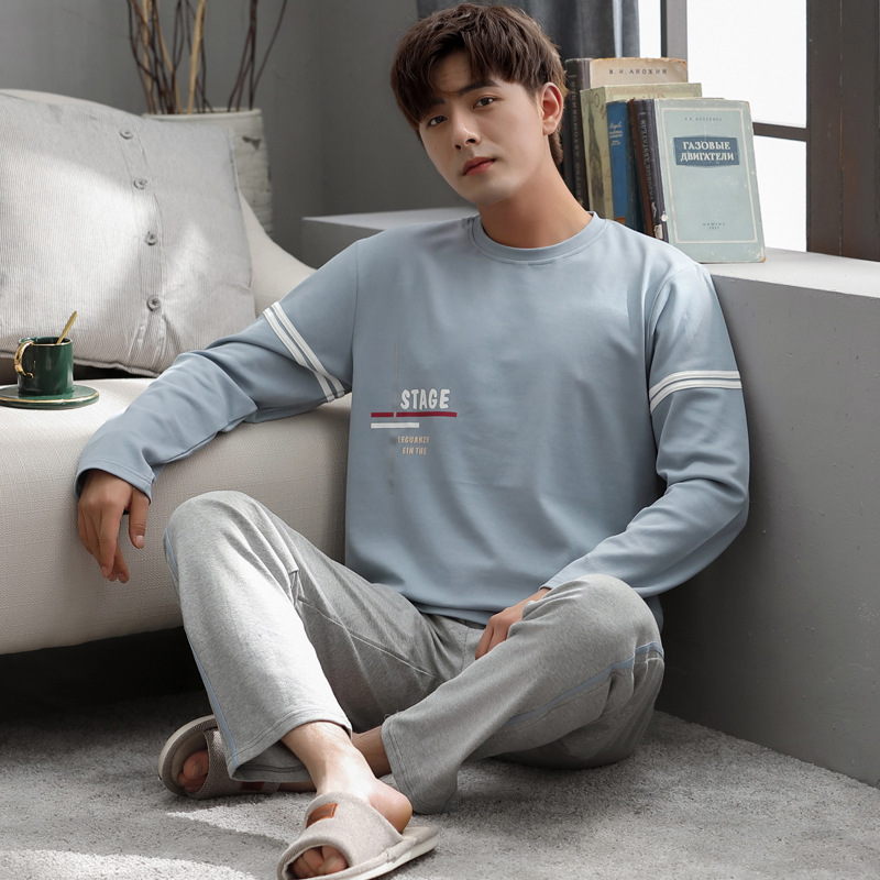 잠옷 남자의 가을 면 긴팔 바지 투피스 캐주얼 아웃웨어 스포츠 남자의 면 가정복 세트