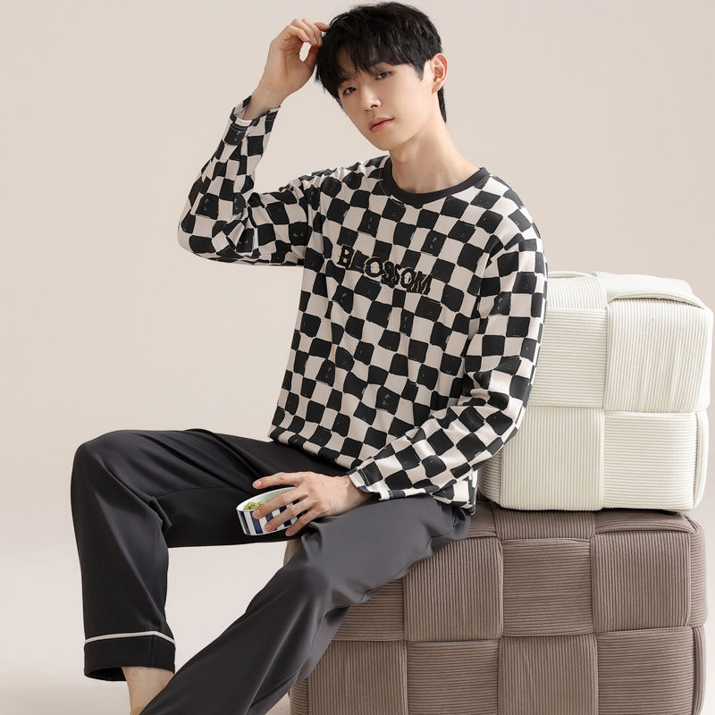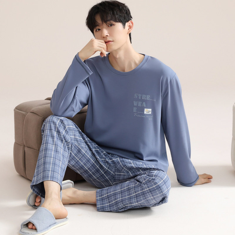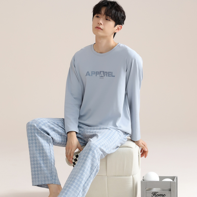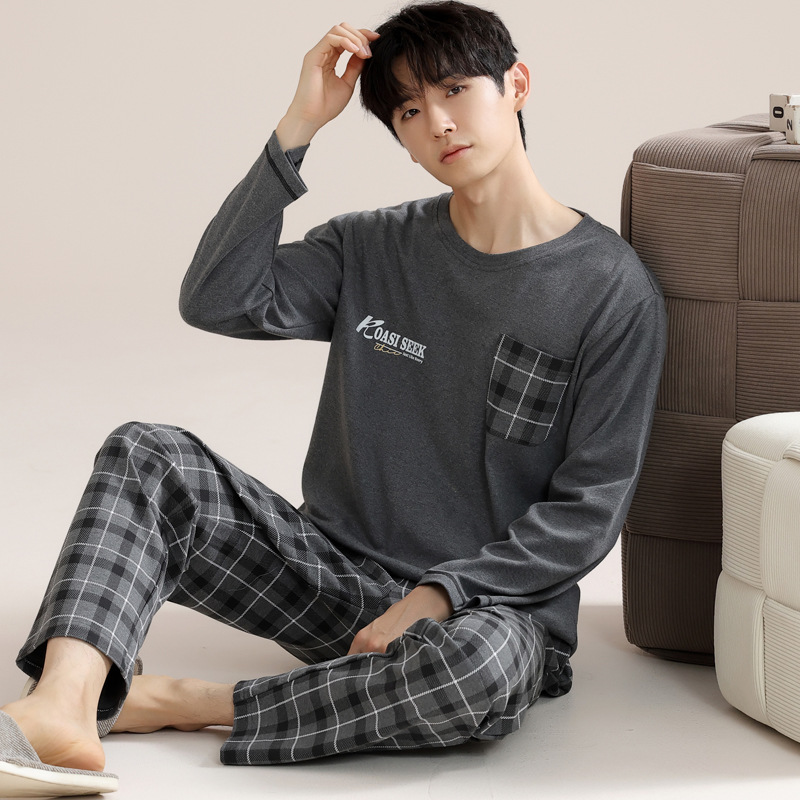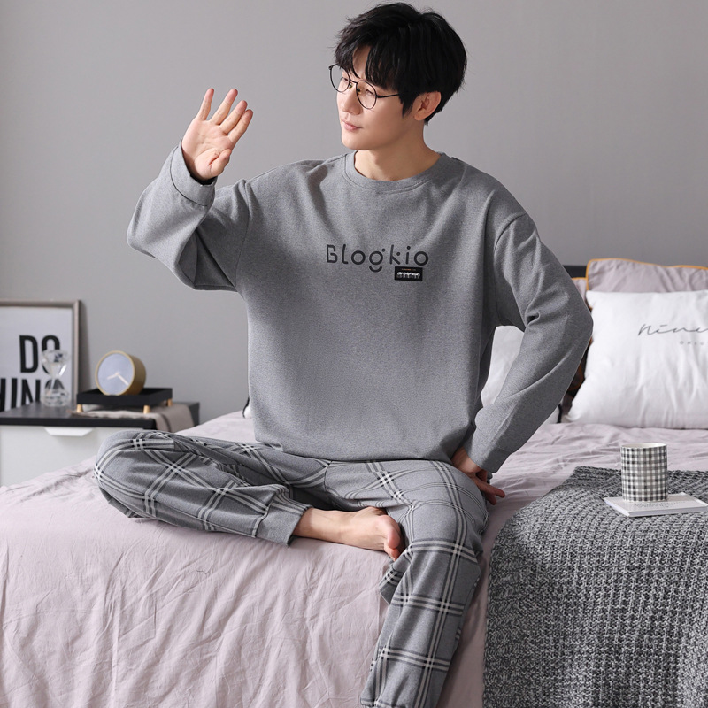 잠옷 남자의 가을 면 긴팔 바지 투피스 캐주얼 아웃웨어 스포츠 남자의 면 가정복 세트