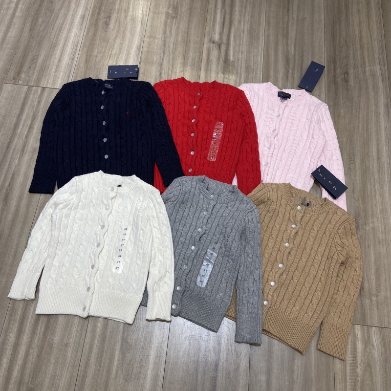 POL 가을/겨울 랄프 소년과 소녀 면화 스웨터 니트 대마 패턴 긴 소매 크루 넥 카디건 스웨터 90-170