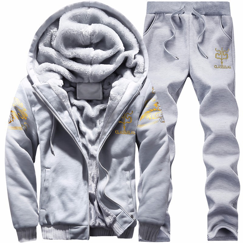 M-9XL 겨울 남자의 기모 세트 유행 두꺼운 후드 캐주얼 투피스 청소년 스포츠 세트