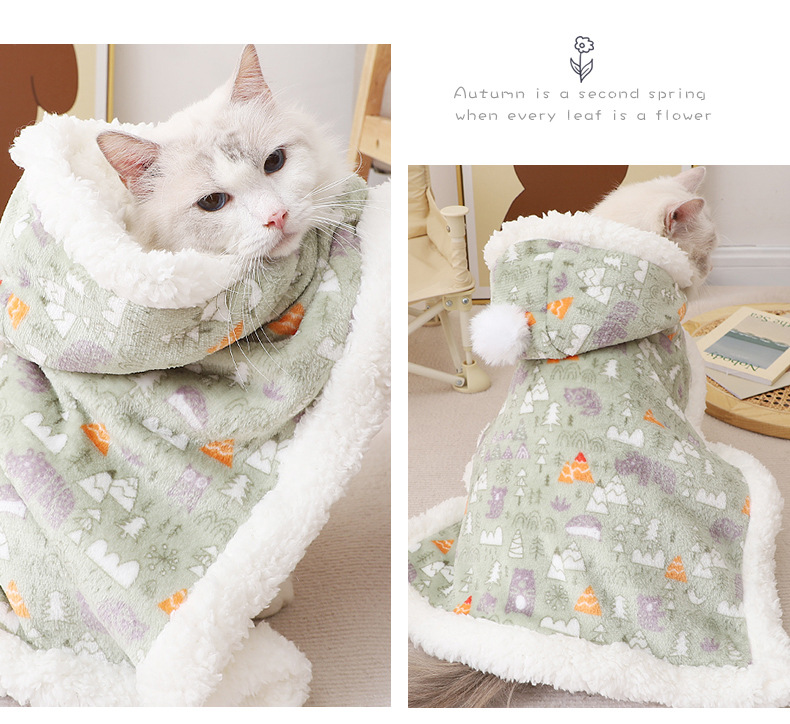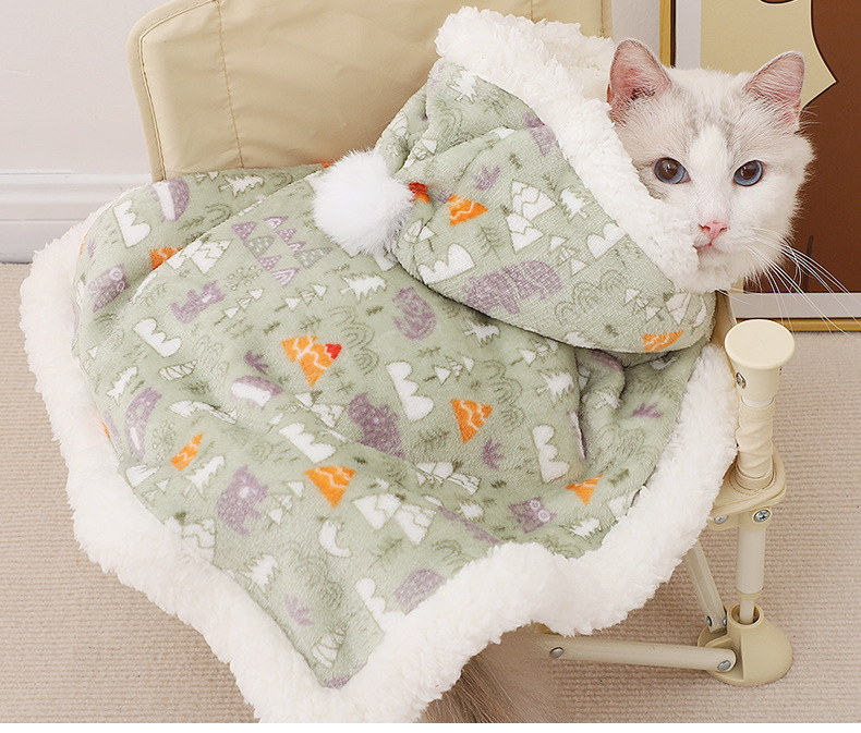 애완 동물 고양이 모자 망토 가을과 겨울 따뜻한 이불 잠자는 담요 숄 망토 고양이 둥지 겨울 작은 우유 고양이스토어 가기