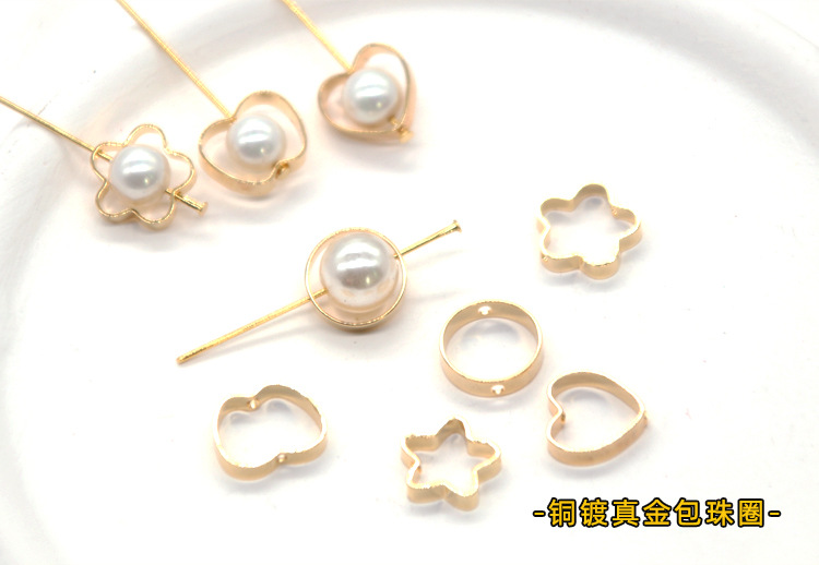 구리 클래드 18K 트루 골드 색상 보존 비드 프레임 오각 별 사랑 하트 모양의 꽃 모양의 비드 링 DIY 비드 링 페르시 액세서리스토어 가기