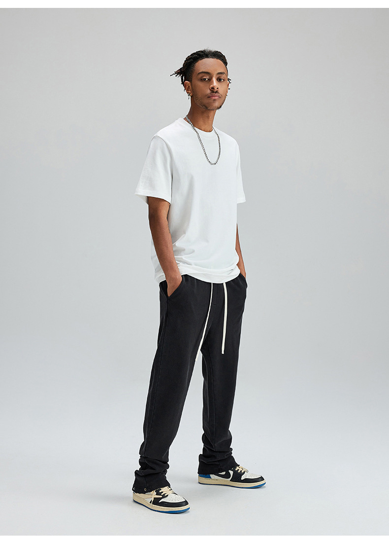 무거운 순면 스트레이트 레그 팬츠 남성용 아메리칸 스타일 레트로 트렌디 브랜드 남성용 느슨한 와이드 레그 다그 캐주얼 스포츠 바지