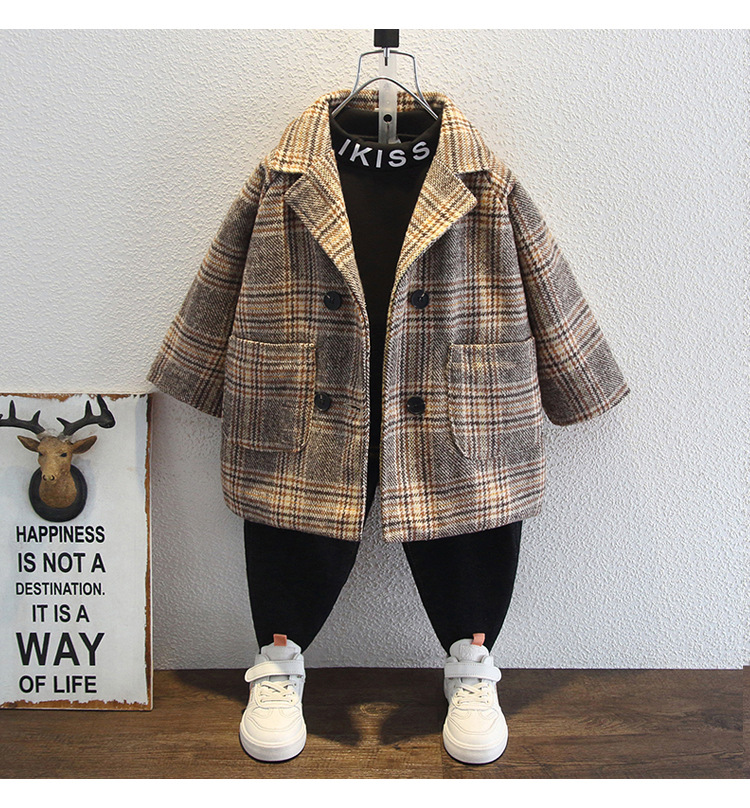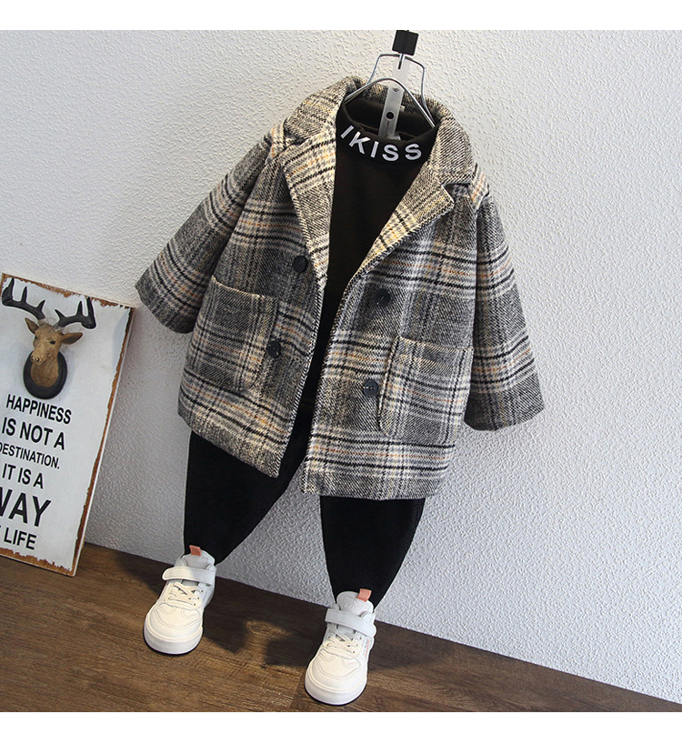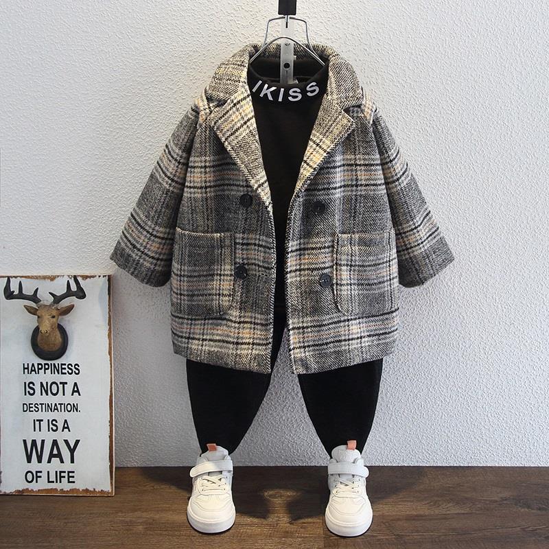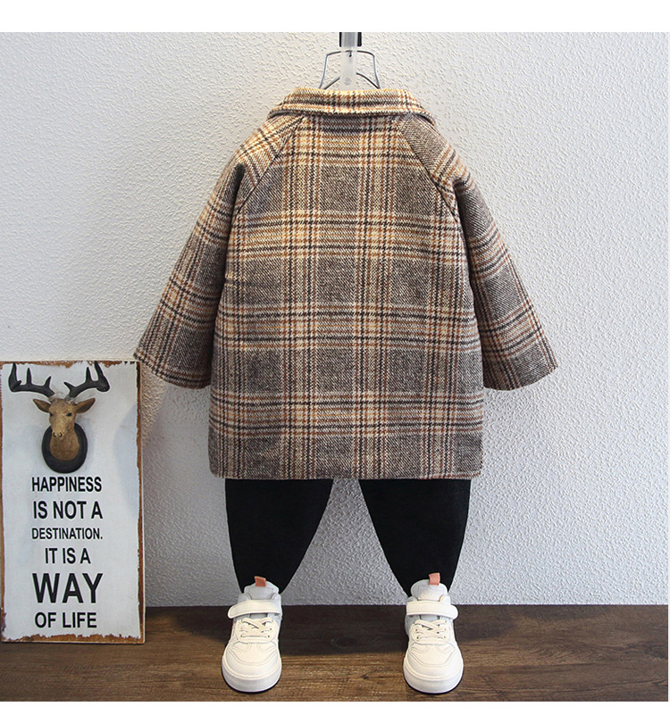 남아용 모직 코트 가을 겨울 신상 트렌디 아동용 한국 스타일 중간 길이 윈드브레이커 두꺼운 겨울옷 체크무늬 따뜻한 옷스토어 가기