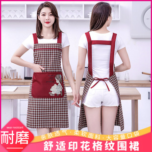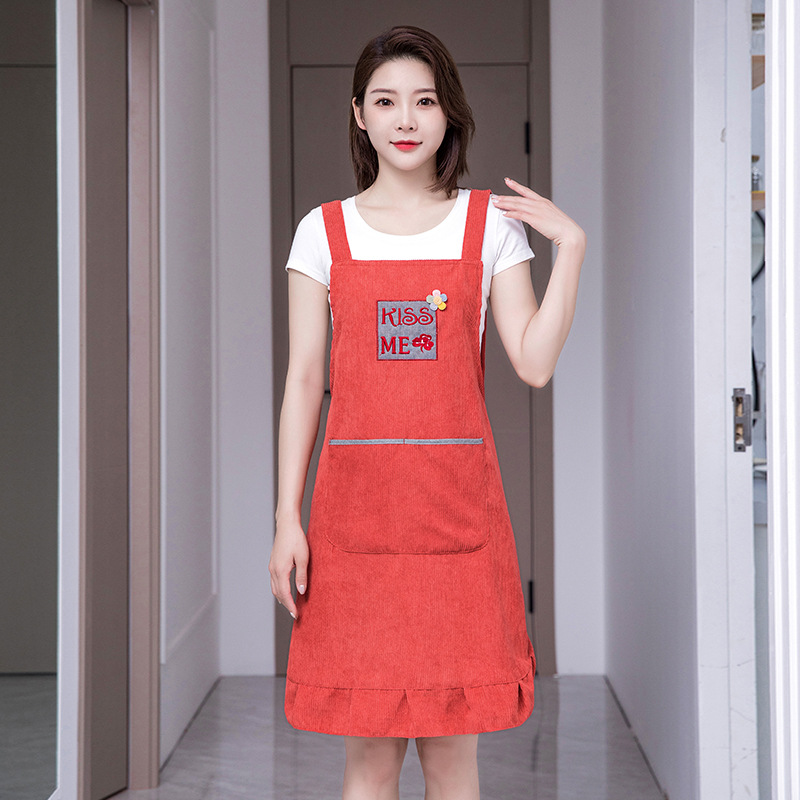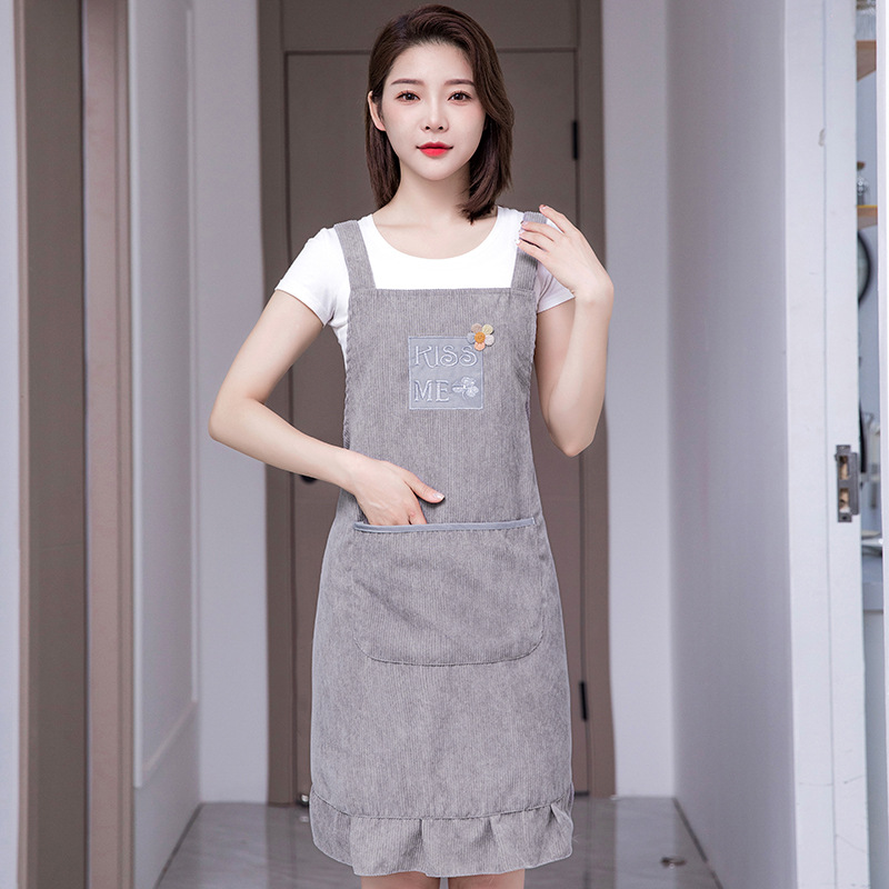 더블 레이어 오일 방지 내마모성 코듀로이 숄더 스트랩 앞치마 대형 포켓 스트랩 방수 안감 커피 우유 차 가게 앞치마