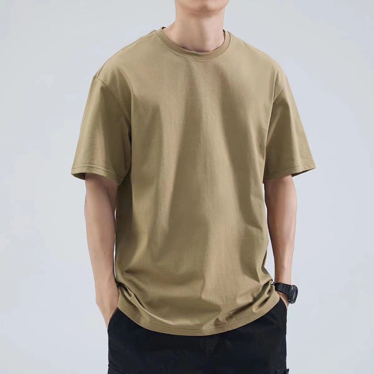 미국인. 320g 헤비 티셔츠 남성용 여름 빗질 코튼 레트로 두꺼운베이스 셔츠 3 니트 반소매 남성과 여성스토어 가기