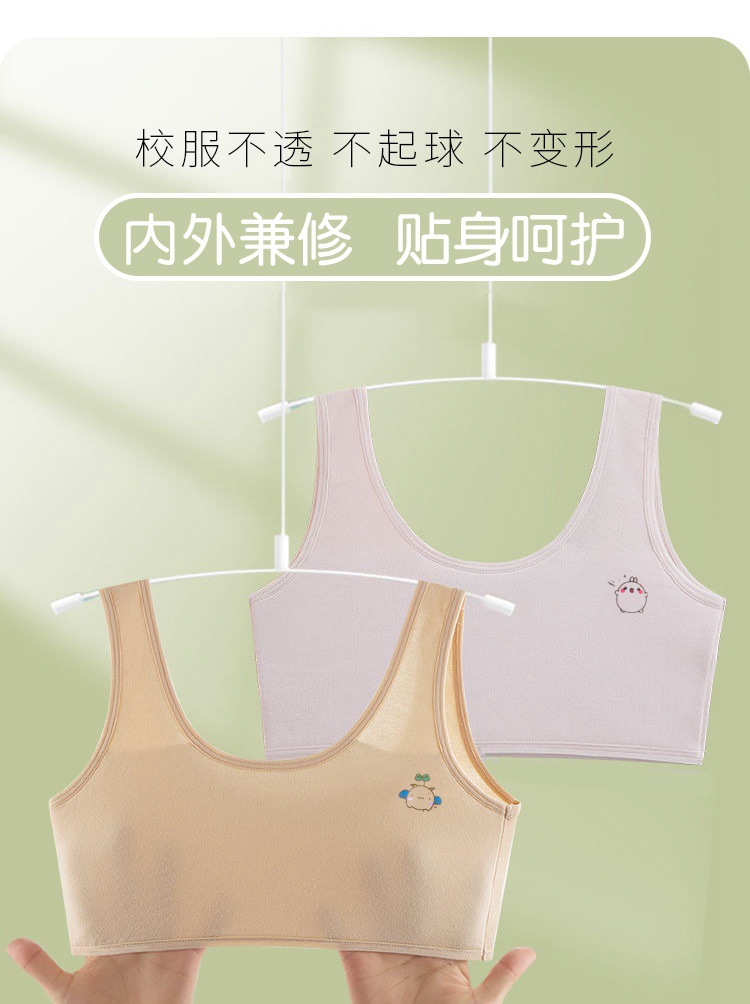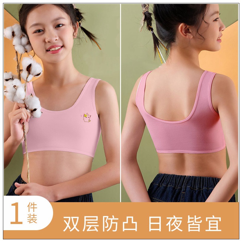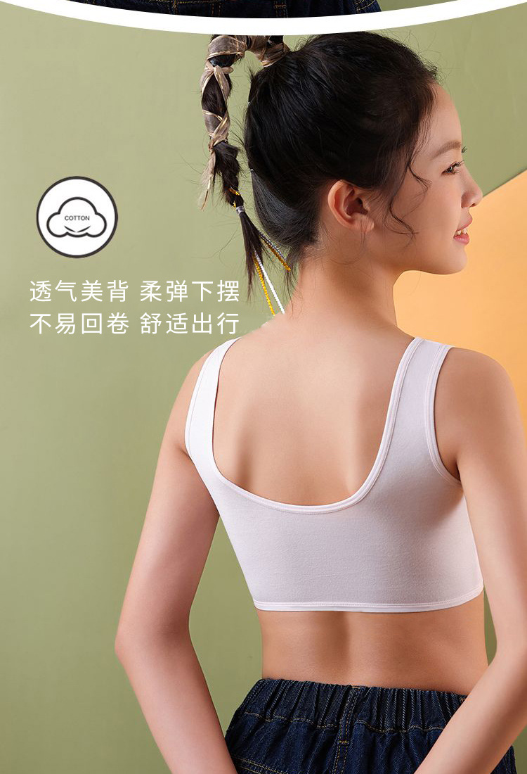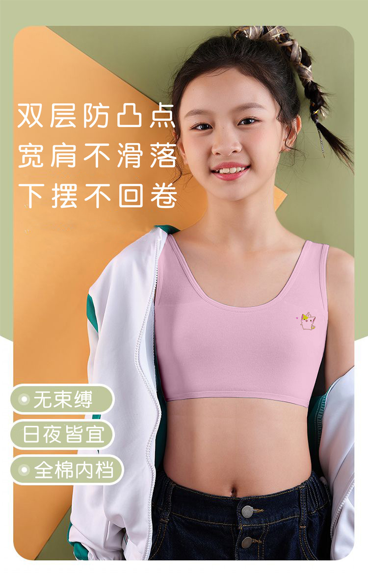 8~14세 여아 발달기용 이중 레이어 조끼형 속옷, 초중등학생 여아용 노와이어 브라탑, 속옷으로 입는 형태스토어 가기