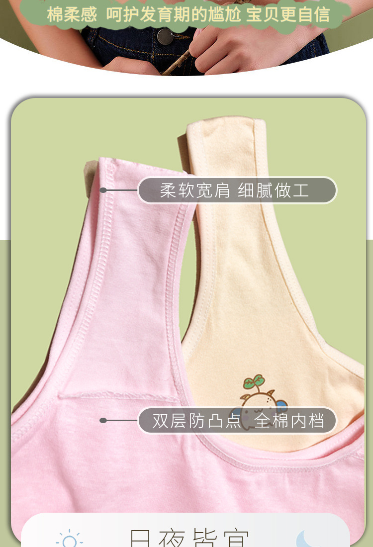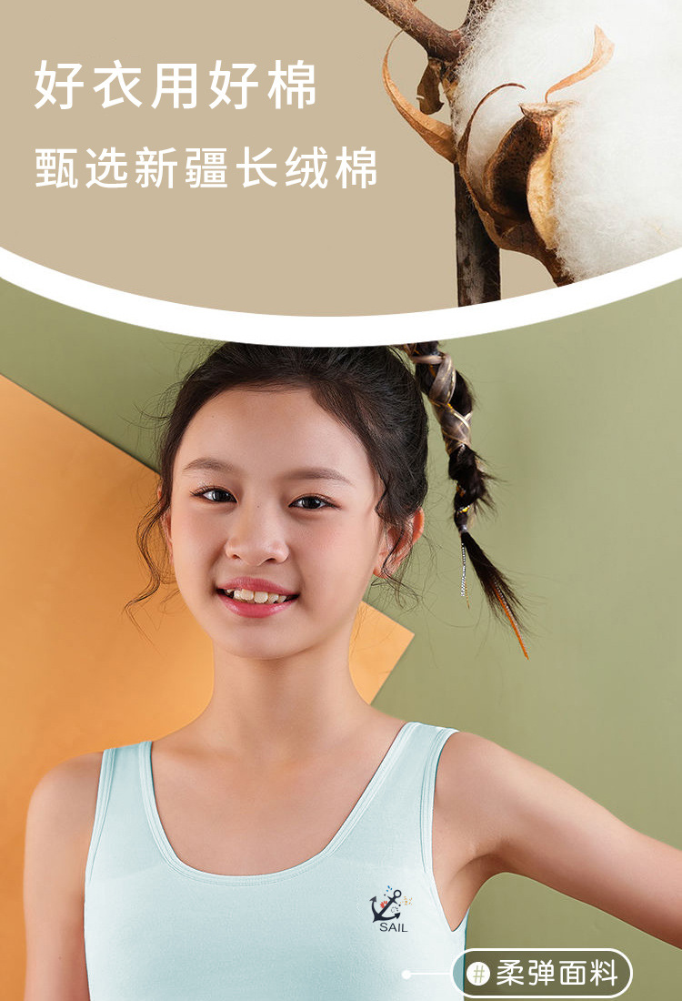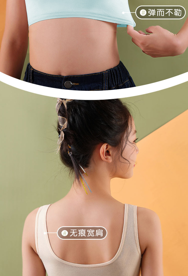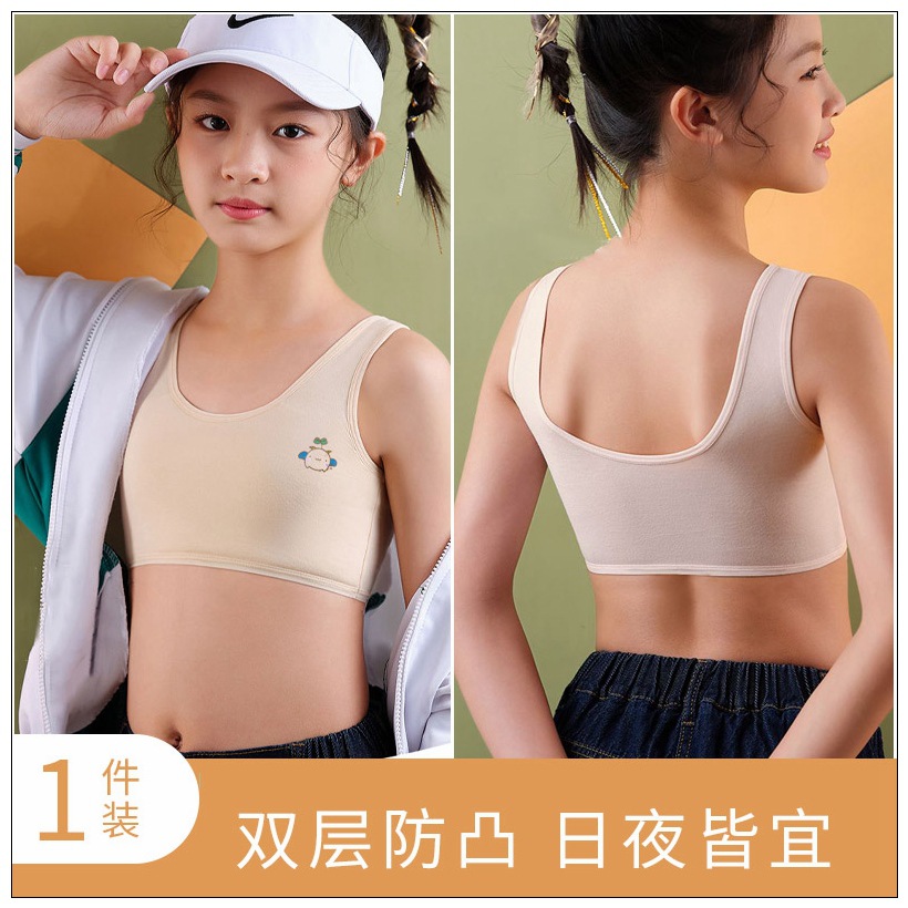 8~14세 여아 발달기용 이중 레이어 조끼형 속옷, 초중등학생 여아용 노와이어 브라탑, 속옷으로 입는 형태스토어 가기