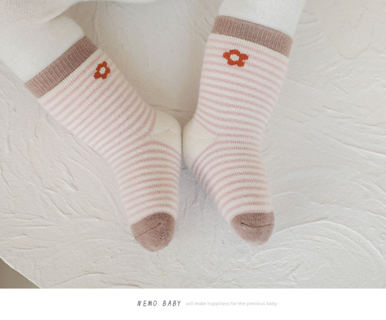 아기 양말 겨울 두껍게 테리 따뜻한 신생아 아기 양말 줄무늬 꽃 소년 소녀 중반 종아리 길이 양말스토어 가기