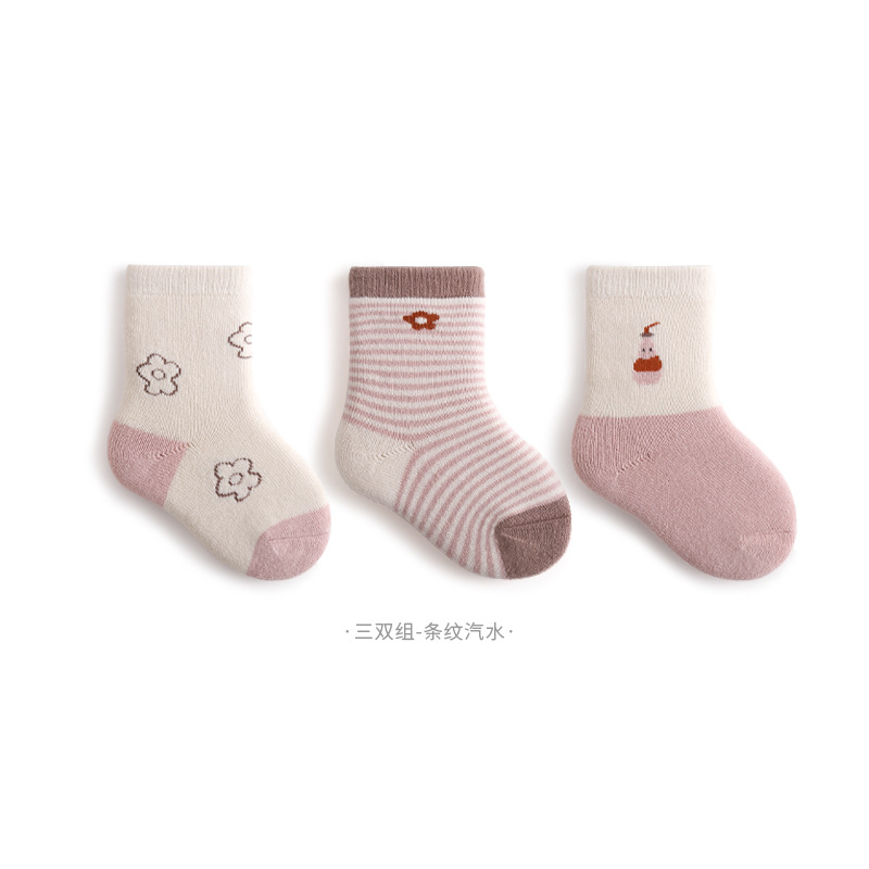 아기 양말 겨울 두껍게 테리 따뜻한 신생아 아기 양말 줄무늬 꽃 소년 소녀 중반 종아리 길이 양말