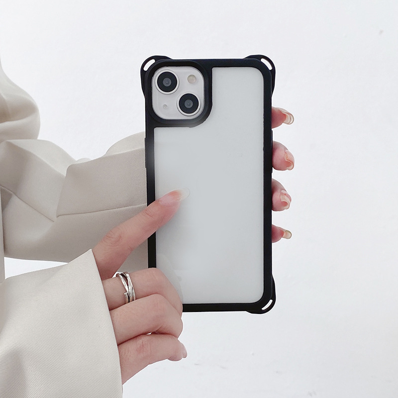 아이폰14프로용 사각형 고리형 스트랩 폰케이스, 사각형 구멍 디자인, 17AIR 풀커버, 13 블랙 엣지 소프트 케이스스토어 가기