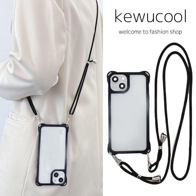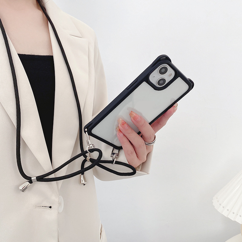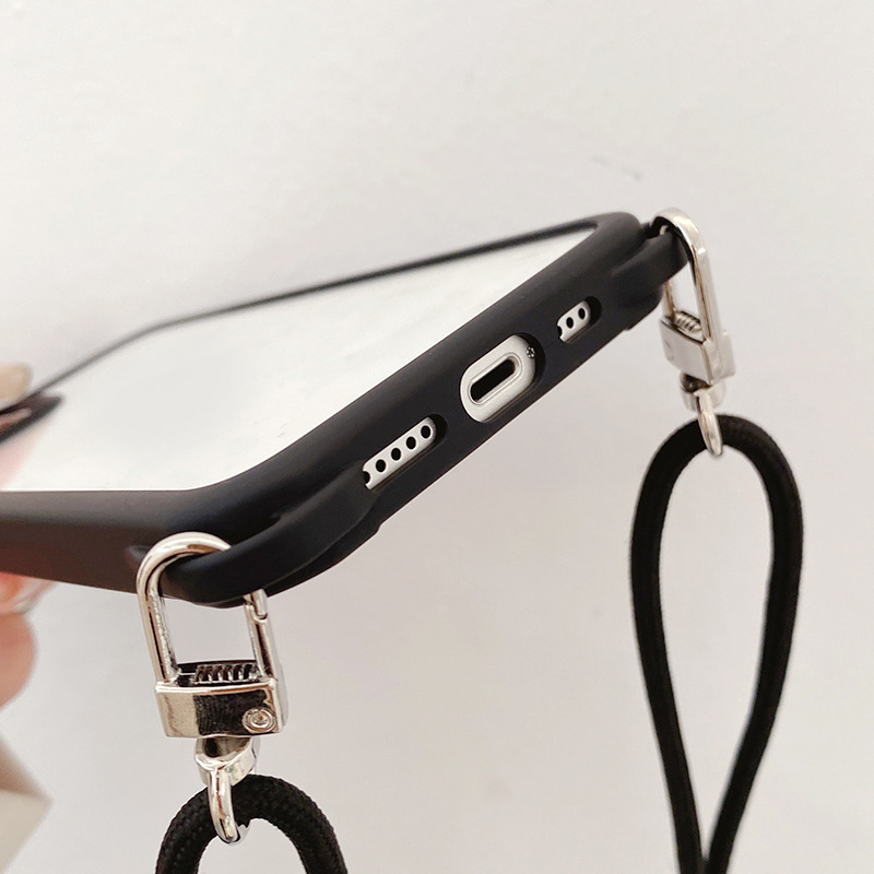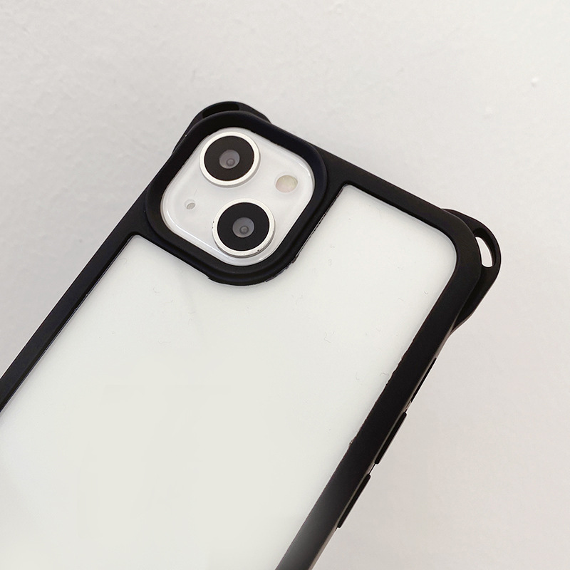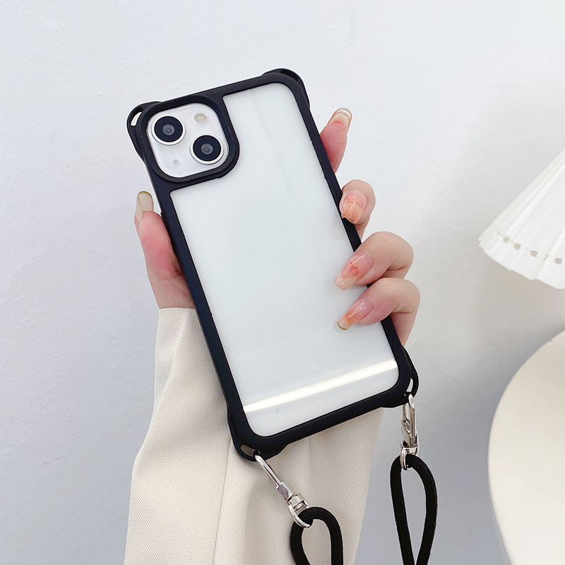 아이폰14프로용 사각형 고리형 스트랩 폰케이스, 사각형 구멍 디자인, 17AIR 풀커버, 13 블랙 엣지 소프트 케이스