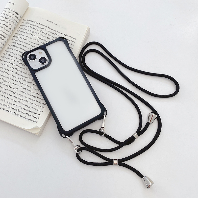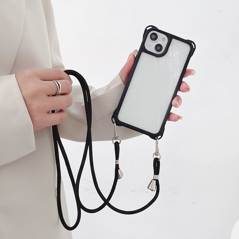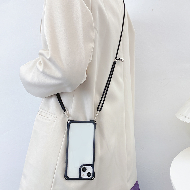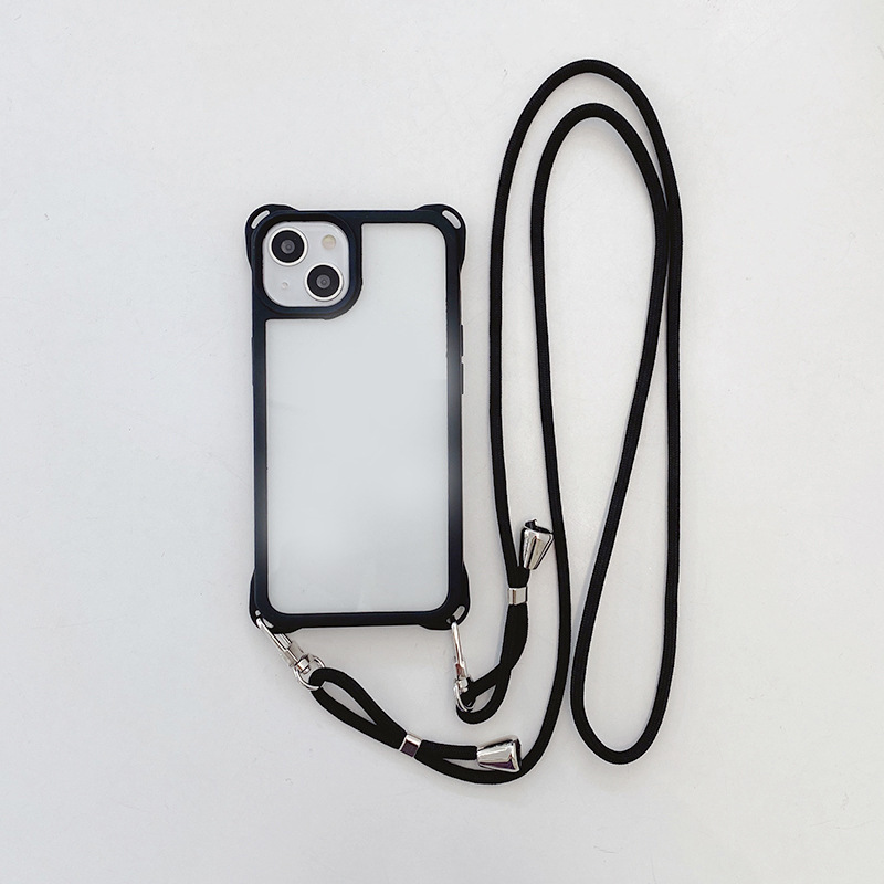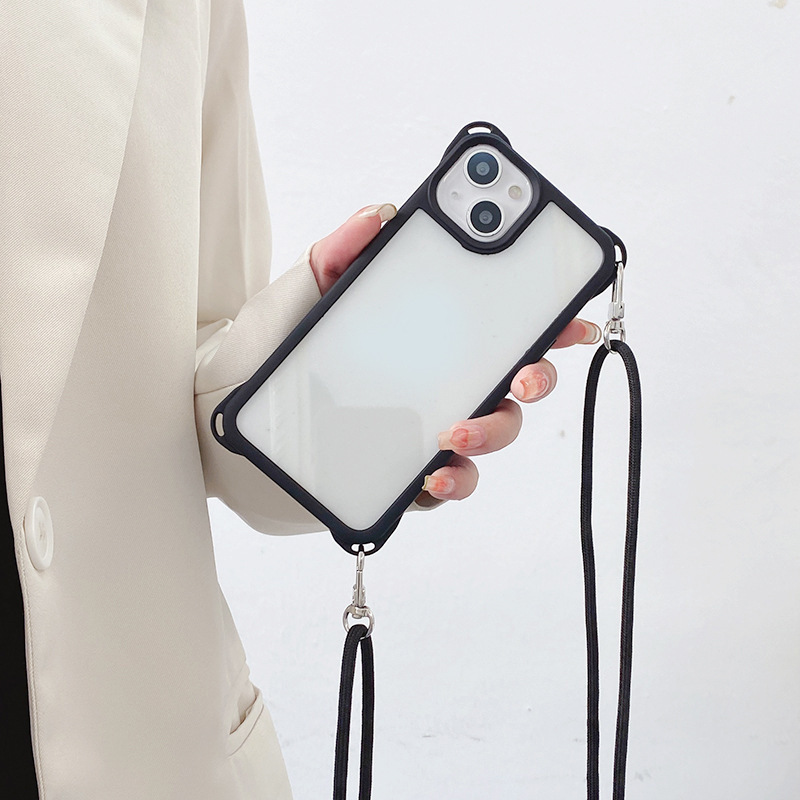아이폰14프로용 사각형 고리형 스트랩 폰케이스, 사각형 구멍 디자인, 17AIR 풀커버, 13 블랙 엣지 소프트 케이스
