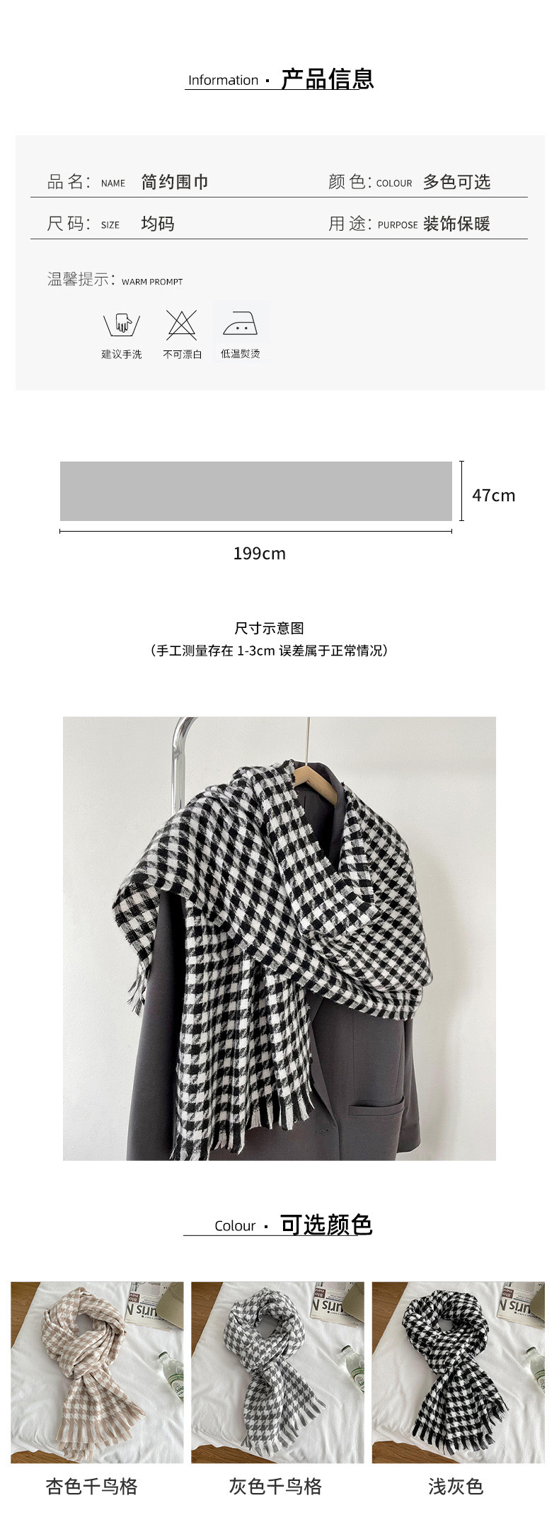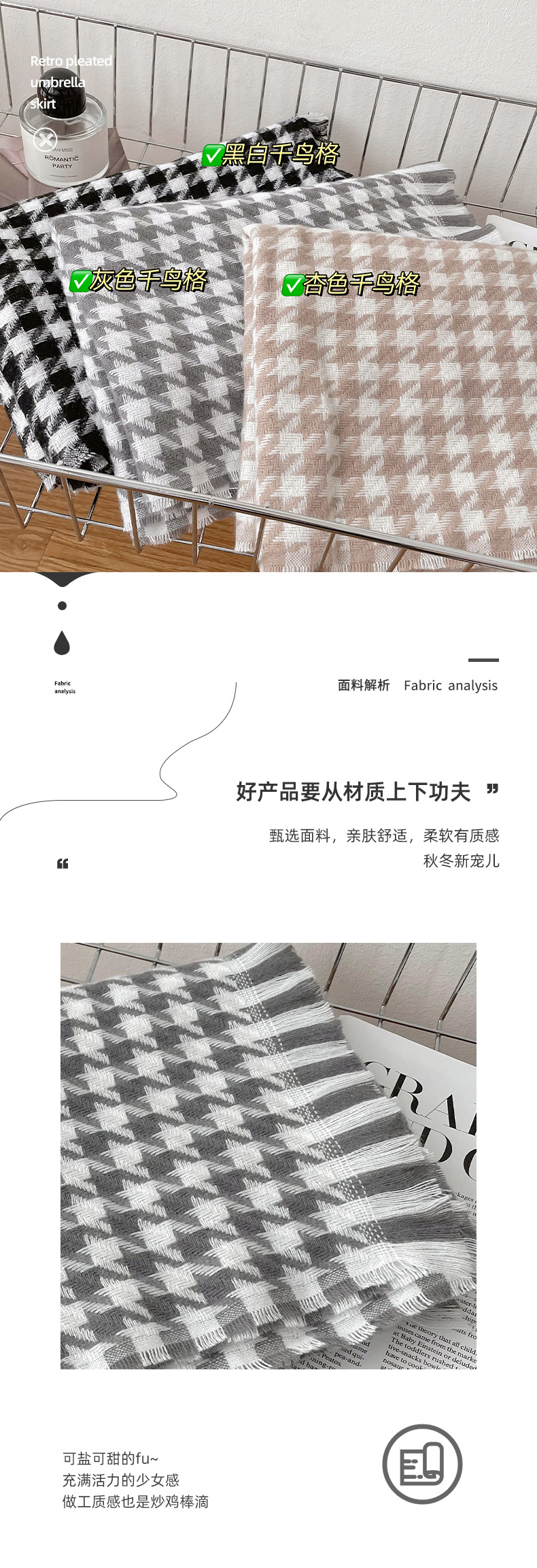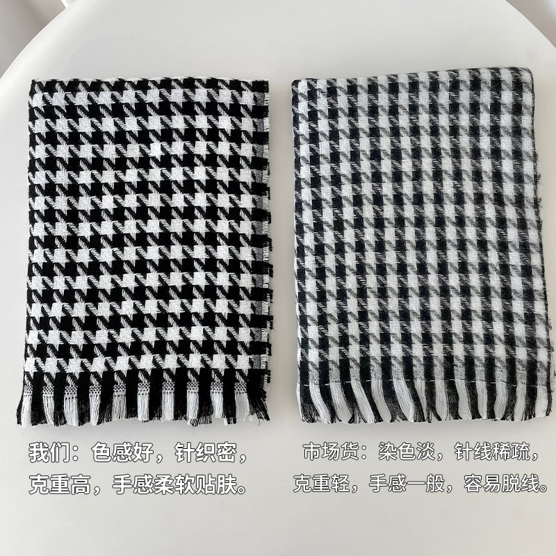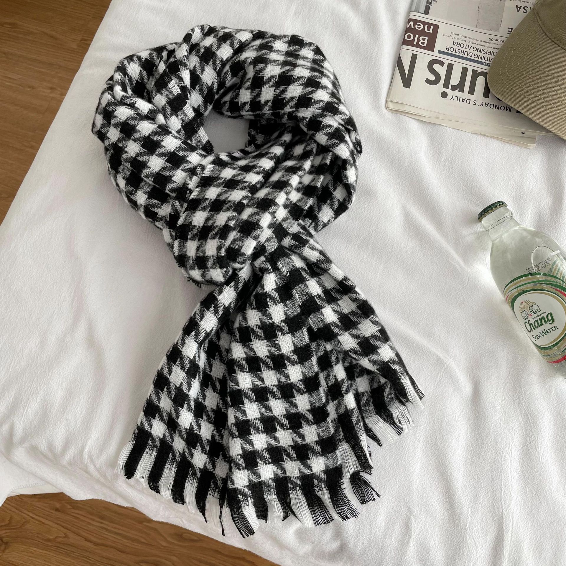 간단한 새로운 클래식 흑백 Houndstooth 모조 캐시미어 스카프 여성용 두꺼운 따뜻한 에어컨 목 보호 숄 스카프스토어 가기