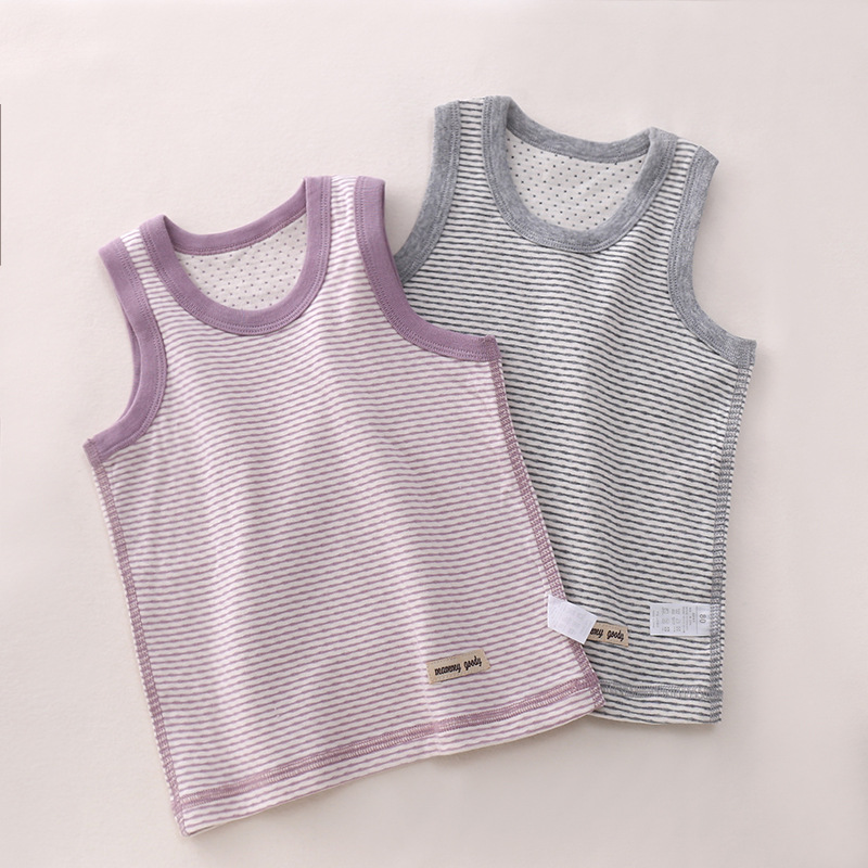 일본 가을과 겨울 두꺼운 어린이 조끼 순면 타입 뼈없는 속옷 양면 원사 염색 스트라이프 남아 기본 조끼