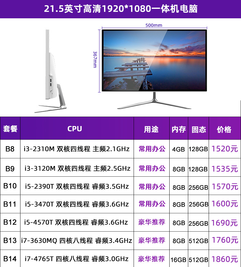 • B12 패키지 Q300/21.5 인치/i5-4570T 듀얼 코어 3.6GHz/8GB/256GB