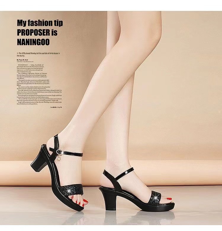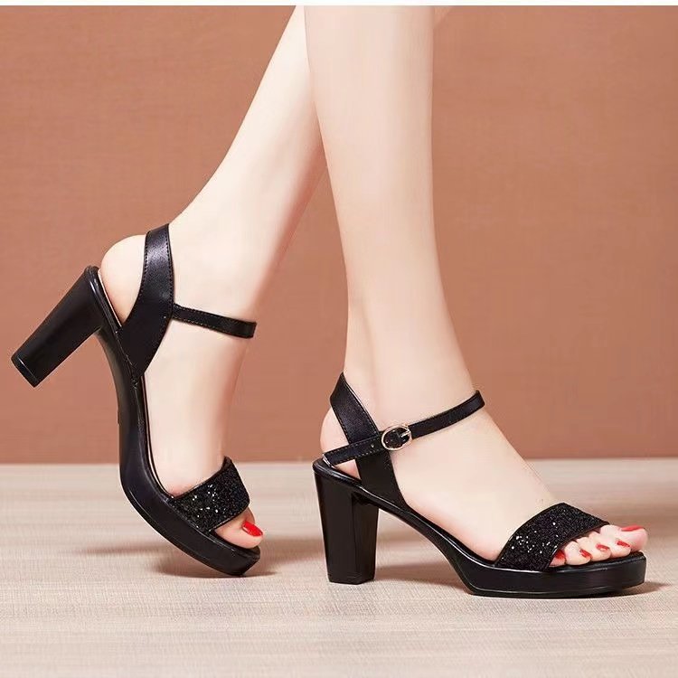한 단어 버클 스트랩 하이힐 샌들 여성용 2022 새로운 여름 우아한 로마 샌들 여성용 두꺼운 굽 모델 여성 신발스토어 가기