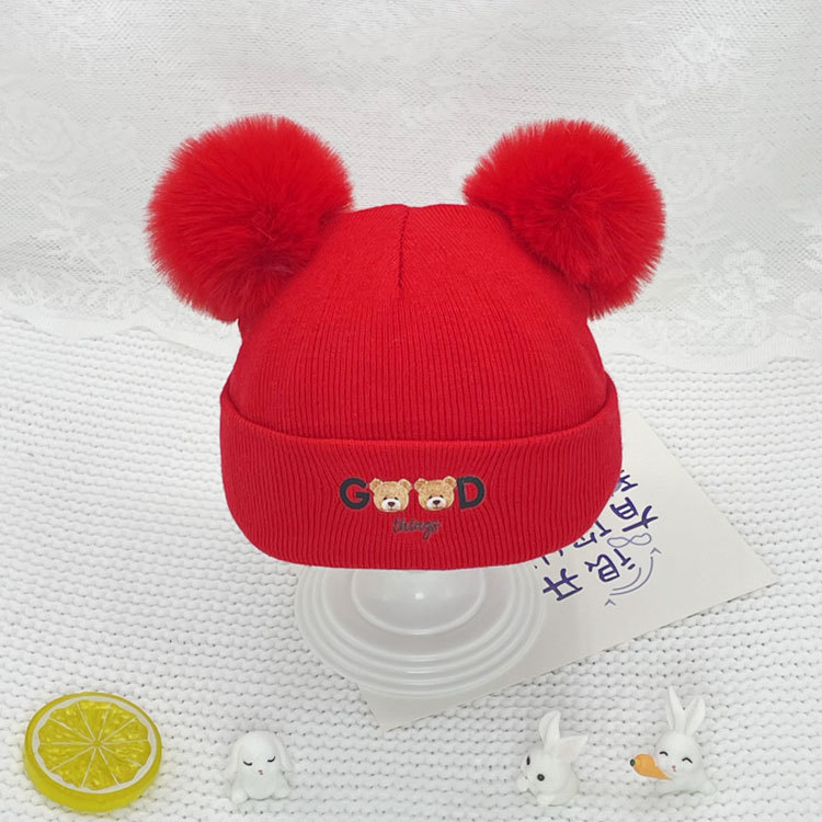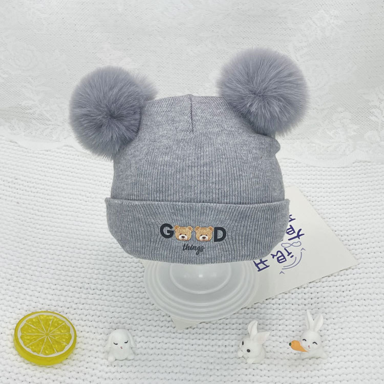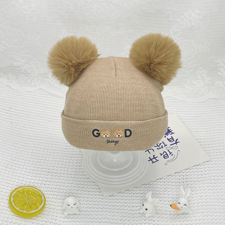 아기 모자 가을과 겨울 만화 곰 양모 모자 남자와 여자의 새로운 한국어 버전 아기 더블 모피 공 신생아 따뜻한 모자스토어 가기