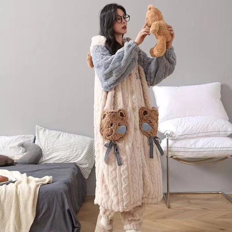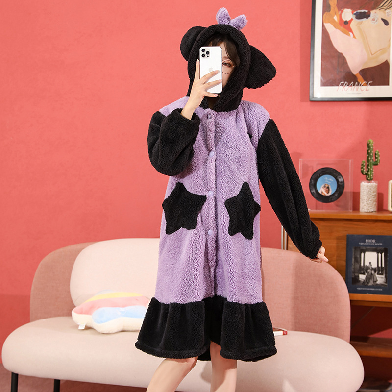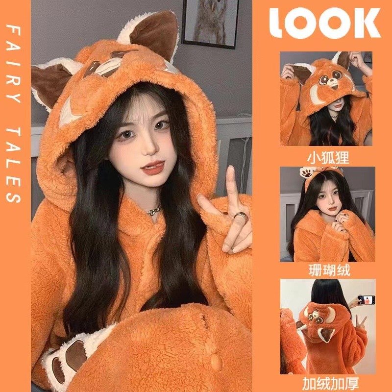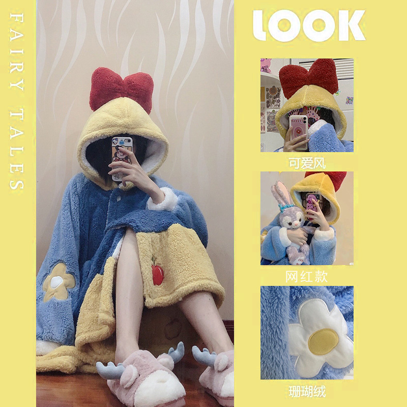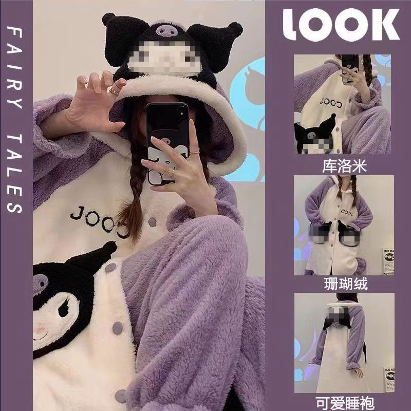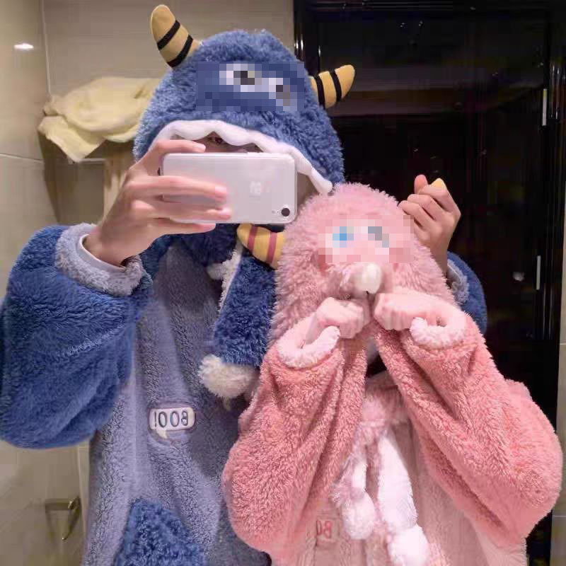 귀엽고 재미있는 흰동가리 잠옷 가을 겨울 한톤 커플용 남녀 두꺼운 산호 벨벳 만화 홈웨어스토어 가기