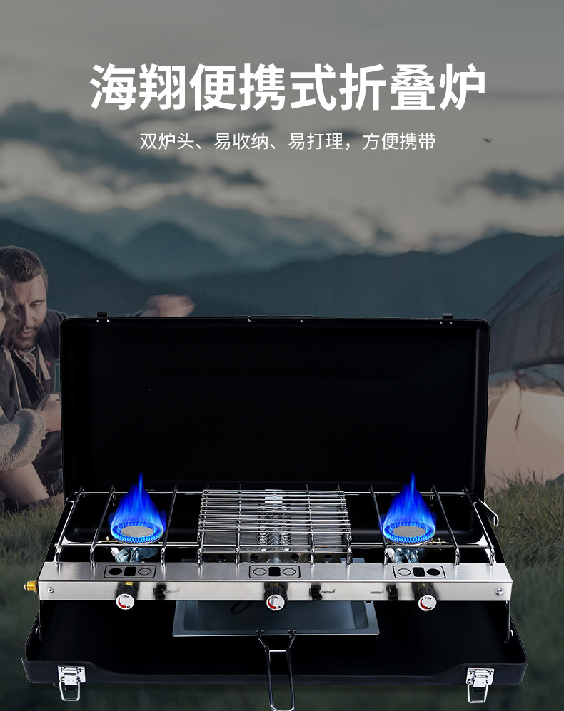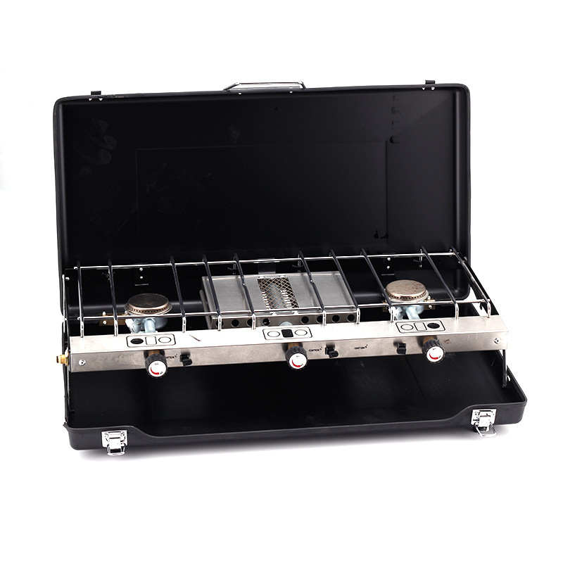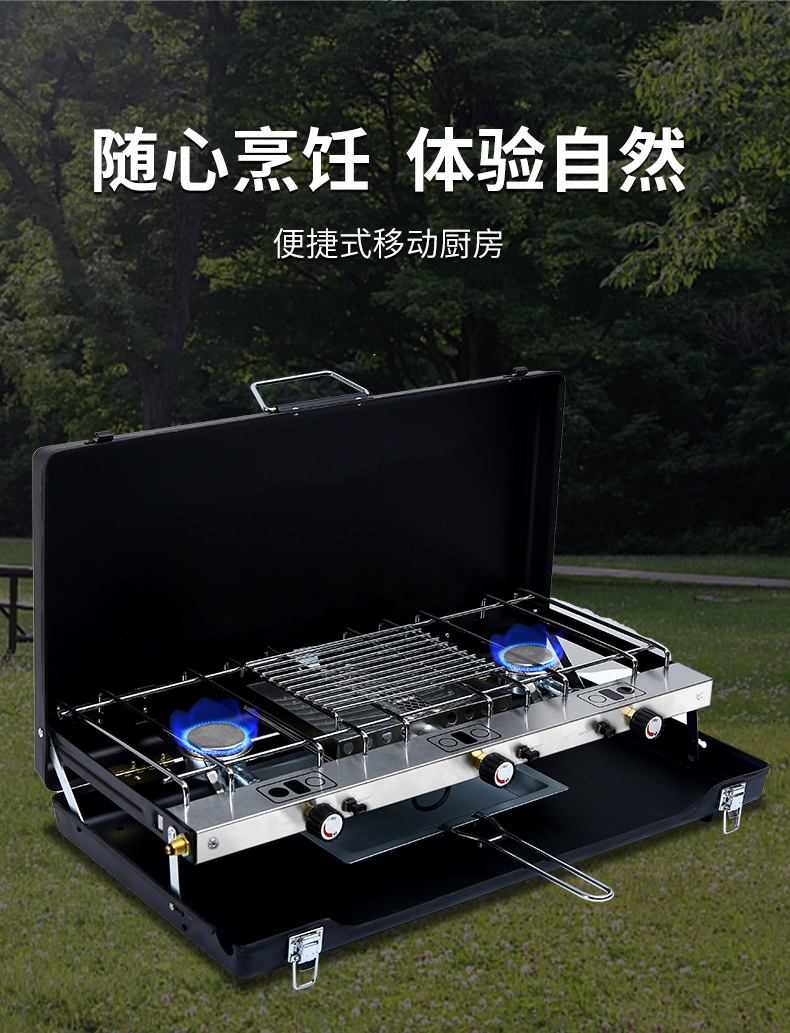 야외 가정용 바베큐 그릴 휴대용 접이식 바베큐 그릴 더블 스토브 강력한 스토브 가스 스토브 이중 용도 카세트 스토브