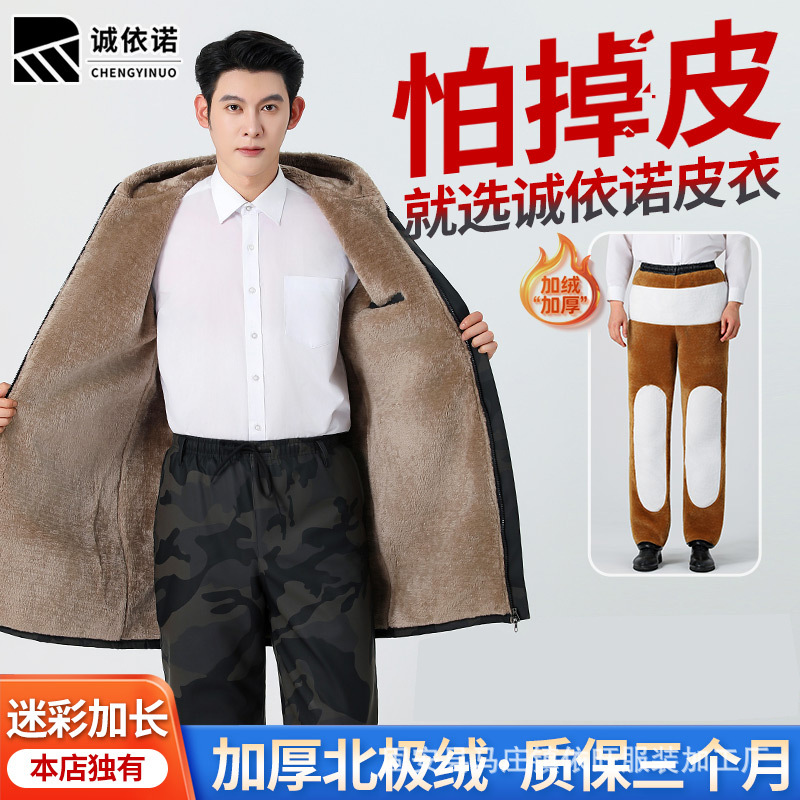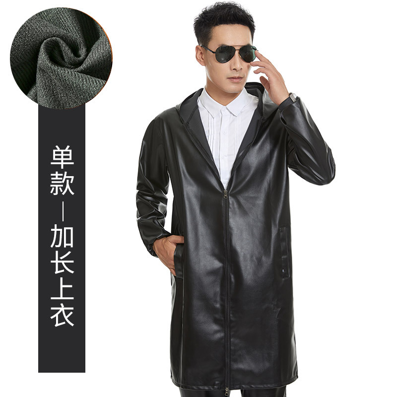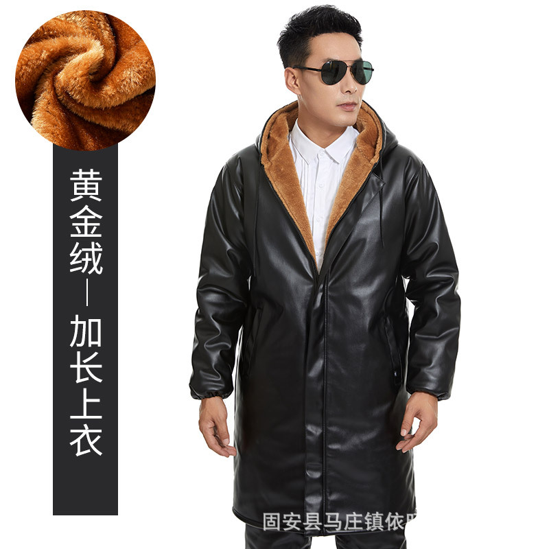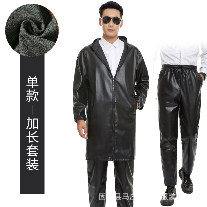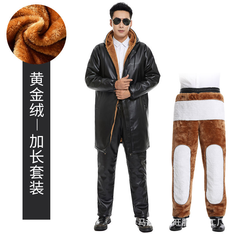 긴 가죽 남자의 기모 두꺼운 기름 방지 방수 겨울 승마 중년 및 노인 아빠의 가죽 옷 가죽 바지 세트 남자스토어 가기